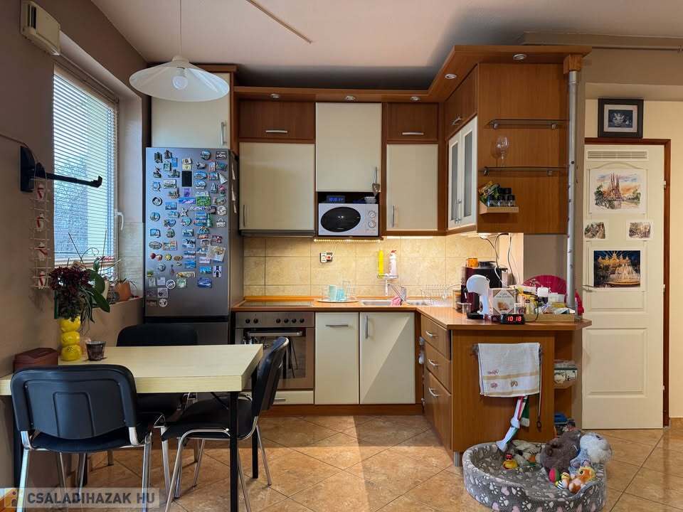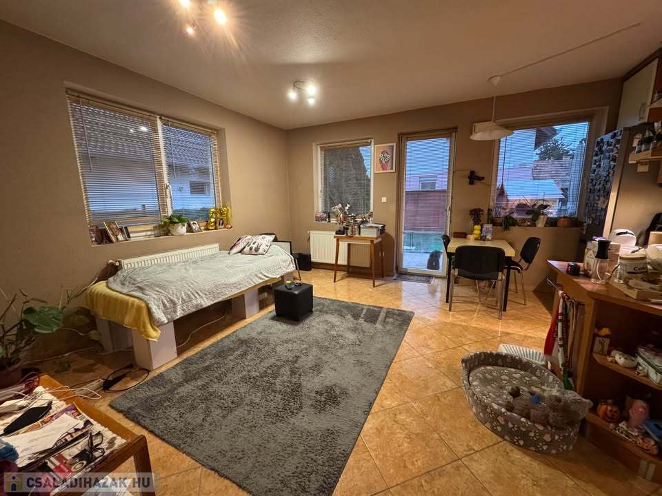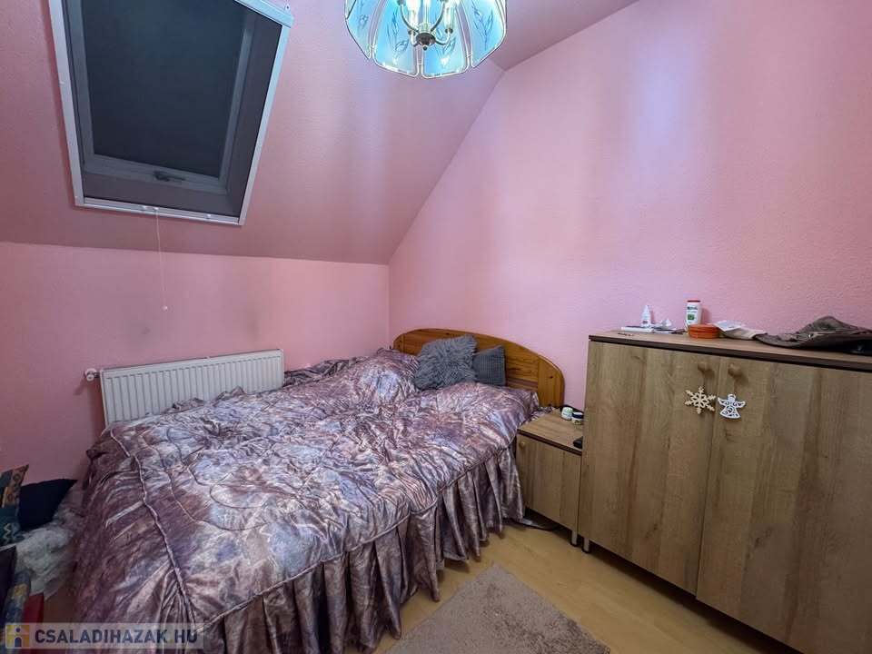 Az ingatlan 80 m2 alapterületű; 2 hálószoba + amerikai konyhás nappali, spájz, különálló WC, előszoba, lépcsőház, fürdőszoba, padlás.