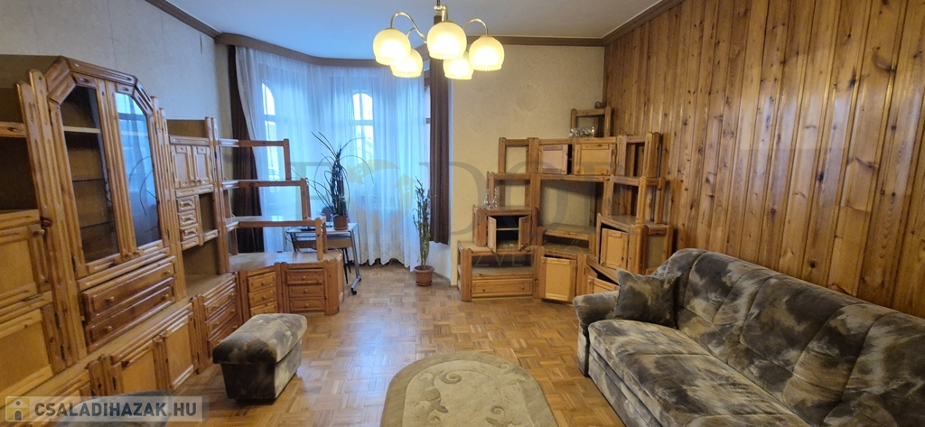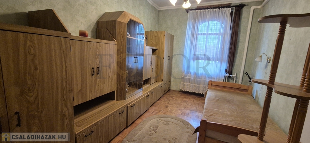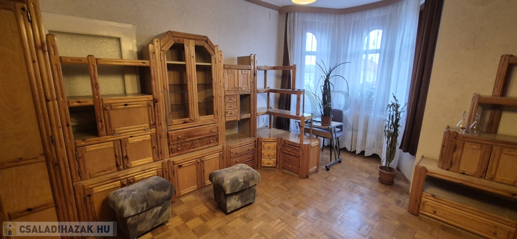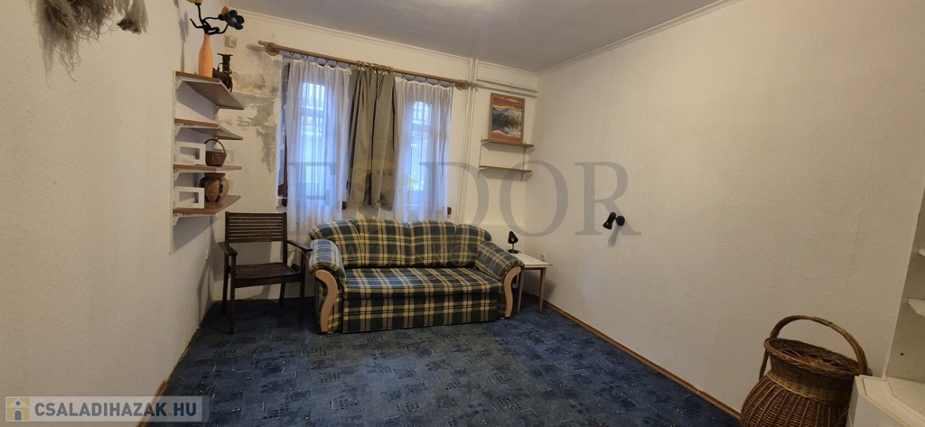 • Emelet (80 m²): eredeti burkolatokkal, de stabil, jól használható állapotban: Erkély (2m2), előtér, konyha+étkező, kamra, 2 szoba, fürdő, wc.