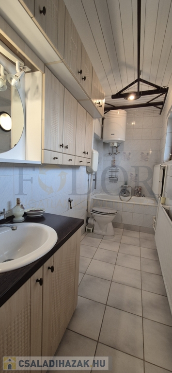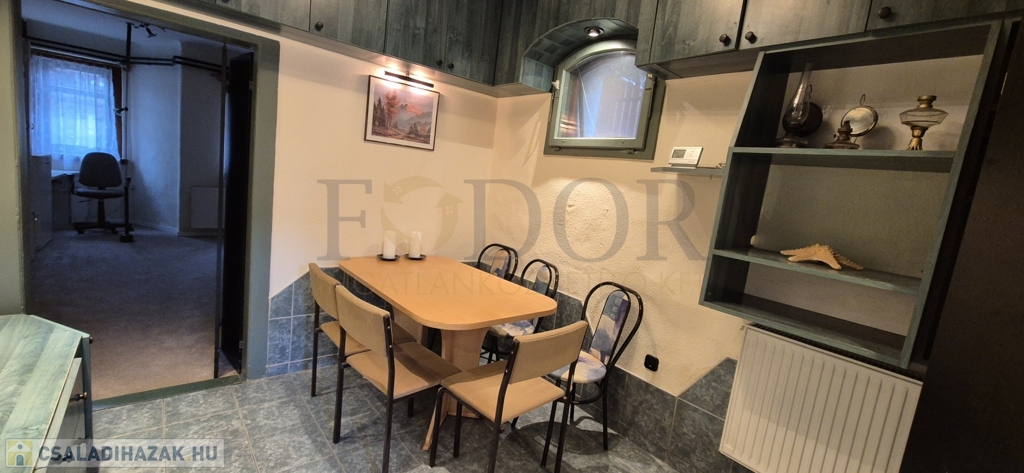 • Szuterén szint (80 m²)felújított, modern hidegburkolatokkal : Előtér, 2 szoba, konyha+étkező, kamra, fürdő, wc.