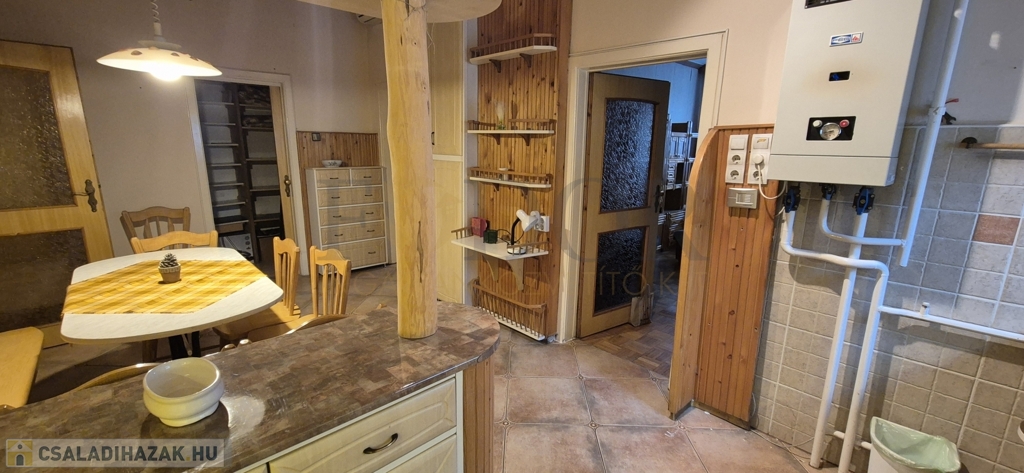 A fűtést egy nyílt égésterű FÉG kazán biztosítja radiátoros hőleadással. A kazán a felső szinten található, de az egész házat ellátja. A melegvízről mindkét szinten külön villanybojler gondoskodik. A gépészet részben még eredeti állapotú, így korszerűsítése időszerű lehet.