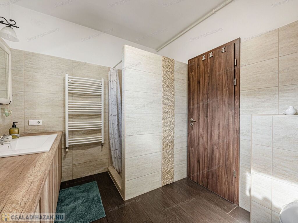 A FŰTÉSRŐL TÖBB MEGOLDÁS IS GONDOSKODIK: gázcirkó, kandalló és hűtő-fűtő klíma biztosítja a tökéletes hőérzetet minden évszakban, ráadásul AZ EMELET ÉS A FÖLDSZINT FŰTÉSE KÜLÖN SZABÁLYOZHATÓ. A ház teljesen szigetelt, alumínium redőnyökkel felszerelt ÍGY ENERGIAHATÉKONY ÉS BIZTONSÁGOS OTTHON. A ház biztonságát RIASZTÓRENDSZER védi, amely A VÉTELÁR RÉSZÉT KÉPEZI.