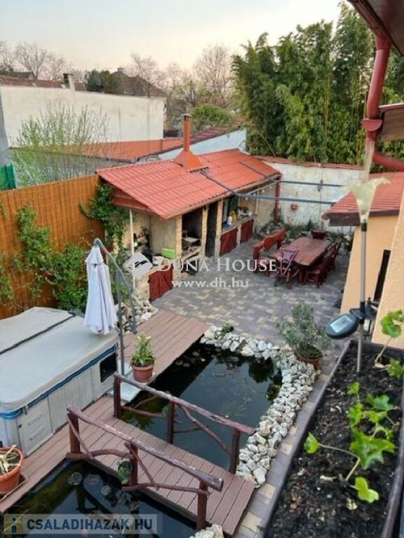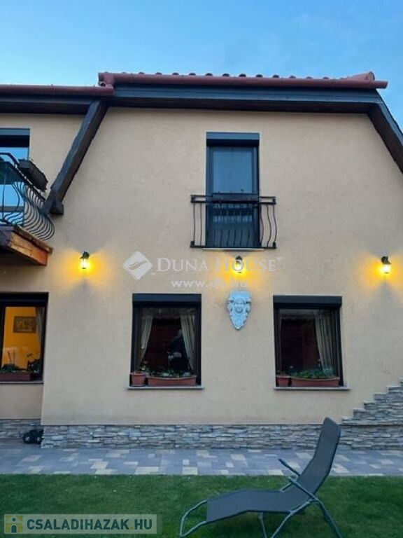egy gyönyörű több generáció számára is alkalmas családi ház!A ház nagyon kellemes környezetben , kerti tó, kültéri Jacuzzi fedett grillterasz környezetében található.A rendezett udvarban több autó parkolására van lehetőség, a haza érkezőket elektromos kapu engedi be.A ház szerves részét képezi a már említett fedett grillterasz, mely mindenféle főzési , és sütési lehetőséget magában rejt, mert egy jól felszerelt konyha várja a szakácskodni vágyókat.Kellemes , szabadtéri időtöltés lehet , baráti társaságok fogadása, ezen a csodálatos környezetben.Az előszobából a házba belépve hatalmas terek szolgálják a kényelmünket.Kiemelném a fagerendás mennyezet szépségét, mely az alsószinten a helyiségeket jellemzi.A nappali mellett étkező és egy épített fatüzelésű , vízteres párkányra ülős kandalló növeli a komfort érzésünket.Innen a teljesen felszerelt, 2021.ben vásárolt kitűnő minőségű gépesített modern konyhába érkezünk .Tovább haladva egy háztartási helyiség ,két fürdőszoba és egy vendég szoba található, melyet ha elválasztanánk egy generáció lakhatására is alkalmassá lehet varázsolni.A zárt lépcsőházból az emeletre egy közlekedő folyosóra jutunk, ahonnan 3 szoba nyílik. A szobák mindegyikéből kitudunk jutni az emeleten épült teraszra.Ezen a szinten is található egy gyönyörű fürdőszoba.Az igényesen megépített Mediterrán stilúsú házból semmi sem hiányzik, minden adott, hogy az új tulajdonosa kellemes , igényes környezetben éljen.A közlekedés kitűnő, iskola , óvoda, bevásárlási lehetőség a közelben.Ha felkeltettem az érdeklődését, kérem hívjon , hogy megmutathassam ezt a gyönyörű, vonzó ingatlant.