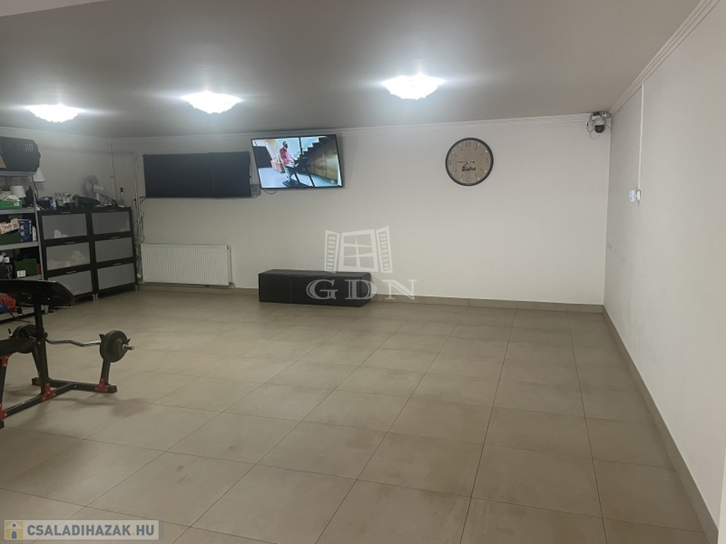 Garázsszint : 123 m2 ,4-gépkocsibeállóval (+1 a kertben fedett helyen ) fürdőszoba közlekedő kazánház lépcsőház.