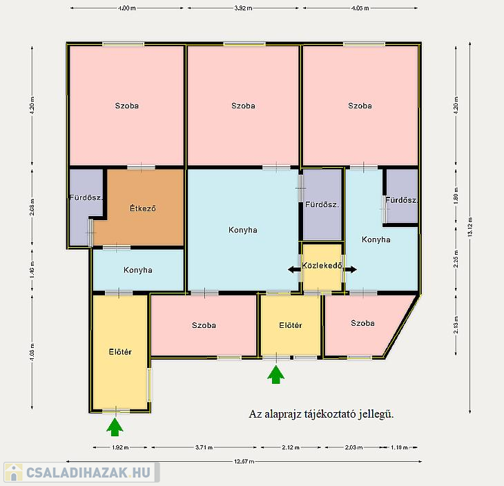 Az egykoron egygenerációs családi házban az idők során három külön összkomfort került kialakításra, tehát a jelenlegi elrendezése szerint háromgenerációs családi házként szolgál. Így összesen 3 szoba+2 félszoba, 3 fürdő és 3 konyha/főzőfülke található az ingatlanban.