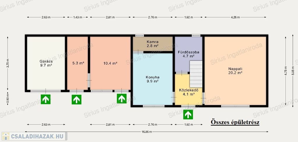 A kialakítás praktikus és élhető elrendezést kínál: TÁGAS NAPPALI MELLETT KÉT KÜLÖN NYÍLÓ HÁLÓSZOBA SZOLGÁLJA A KÉNYELMET, így ideális választás pároknak vagy kisebb család számára is. A HÁZHOZ DUPLA GARÁZS TARTOZIK, amely ritka lehetőség a környéken, akár tárolásra vagy két autó számára is tökéletes megoldást nyújt.