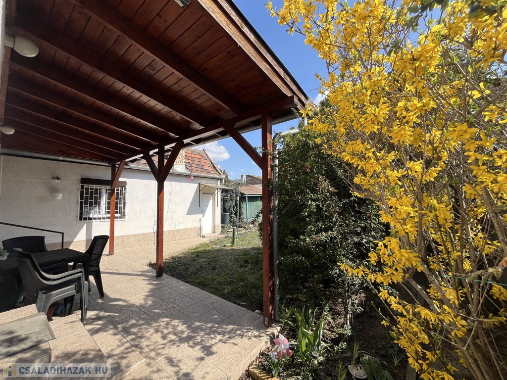 Az ingatlanhoz tágas kert tartozik, amely számos lehetőséget kínál kertészkedésre, kertépítésre, medence kialakításra. A kertben egy igényesen kialakított fedett terasz található közvetlenül a bejáratok előtt, amely tökéletes lehet családi, baráti kerti összejövetelekhez, grillezéshez.
