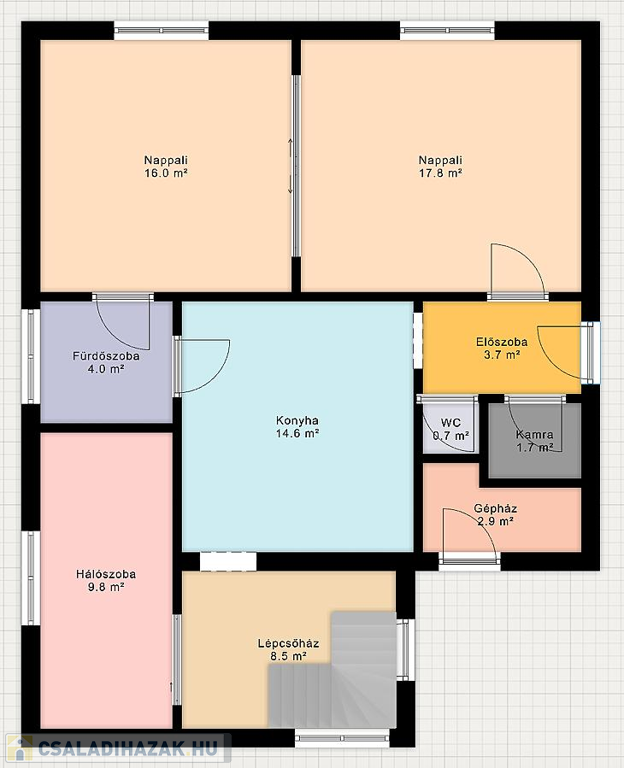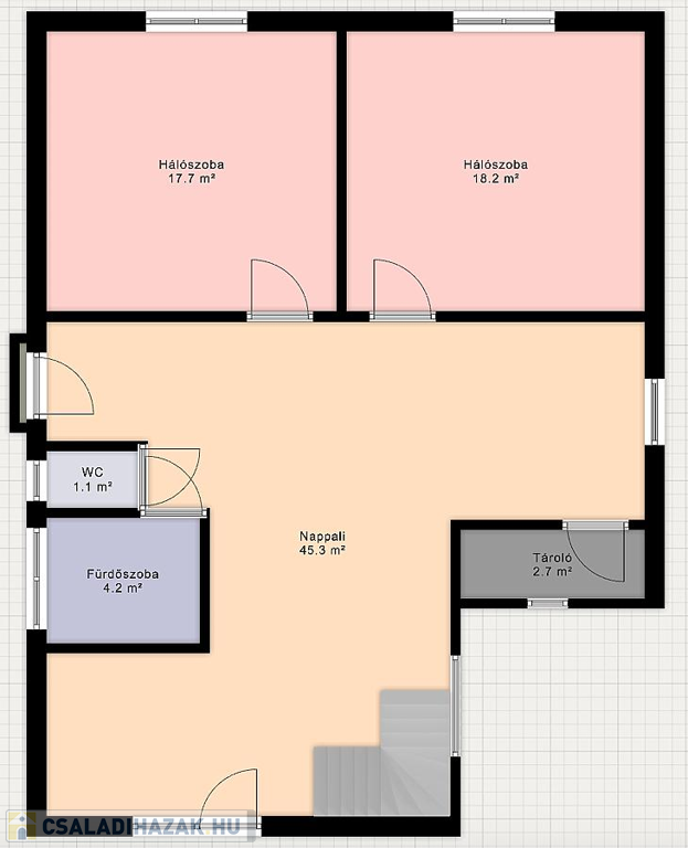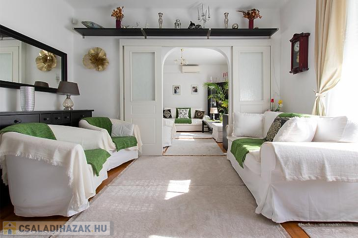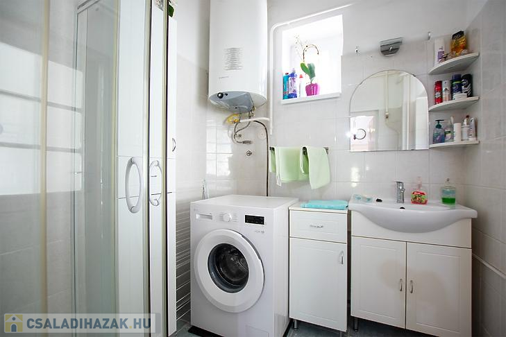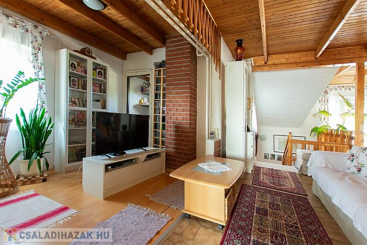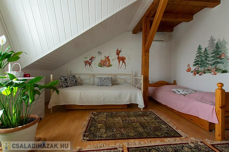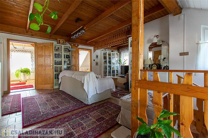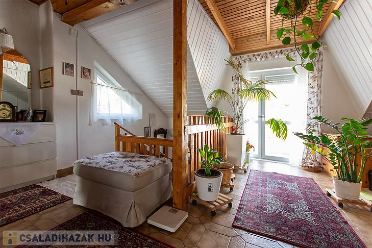 Az ingatlan 4 és fél szobával rendelkezik, 2 és fél szobával a földszinten és 2 külön nyíló szobával az emeleten. Az emeleten 45 négyzetméteres nappali rész fogad minket, ahol akár egy külön konyha is kialakítható könnyedén. Így akár rövid időn belül 2 generációssá is formálható az ingatlan. Az emeletről egyből ki tudunk sétálni a kerti teraszra.