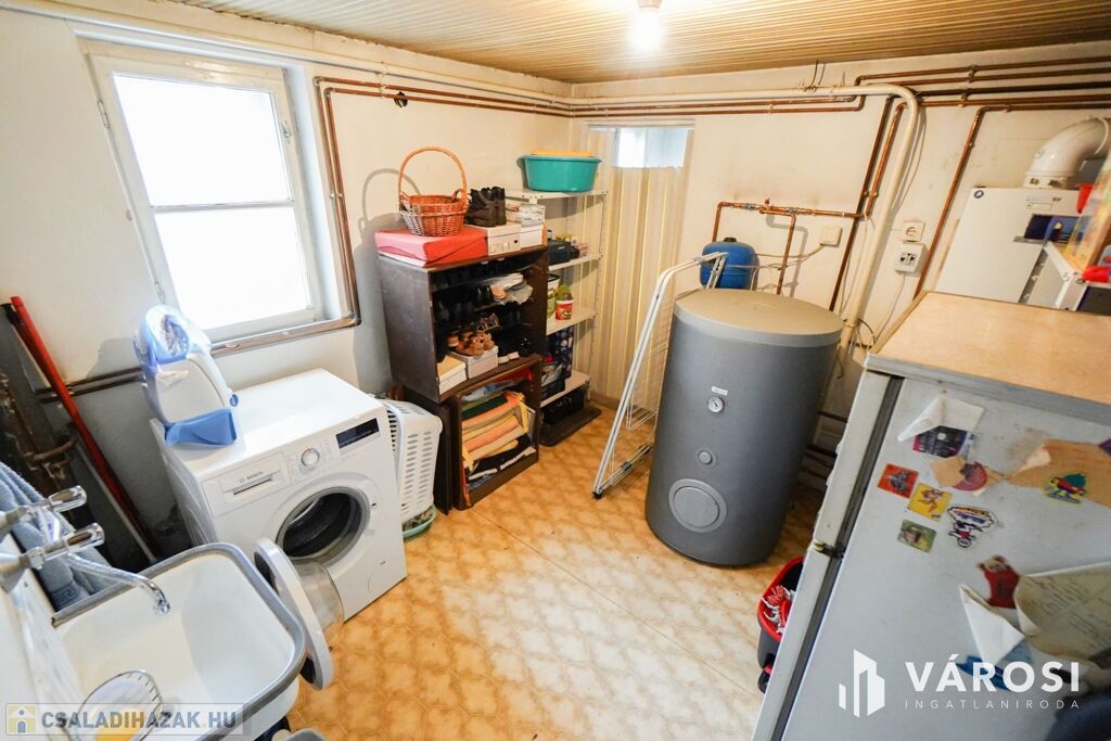 A családi ház fűtése kombicirkóval történik mely egy különálló helyiségben található. A beépytett terasz alatt közel 4nm-es pince mely ideális gyümölcsök és zöldségek tárolására.
