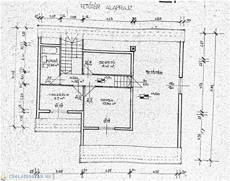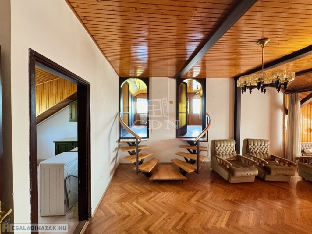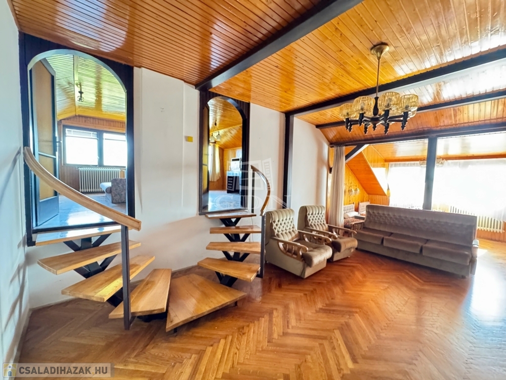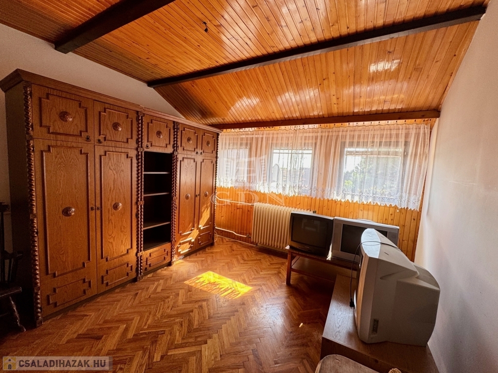 - Emelet: közlekedő (4,95m2), fürdőszoba+WC (5,95m2), konyha (8,45m2), 4 szoba(15,8m2; 8,7m2; 13m2; 6m2)