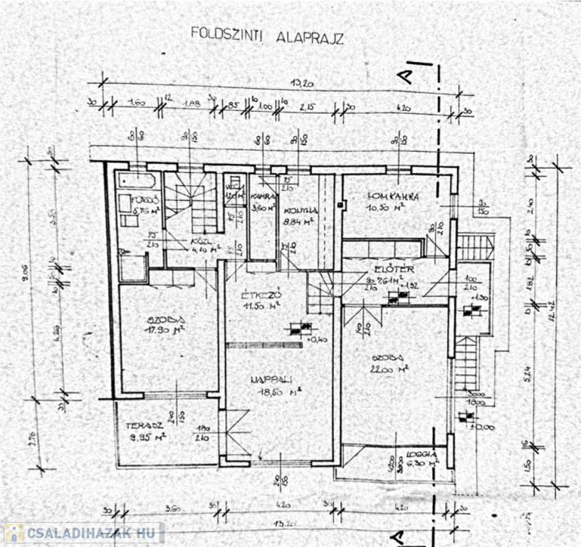 - Földszint: előtér-szoba (17,9 m2), nappali (30 m2), konyha (5,76m2), WC (1,2m2), fürdőszoba (12,4m2), közlekedő (7,6m2), 2 szoba(10,5m2; 22m2), terasz ( kb.40m2).