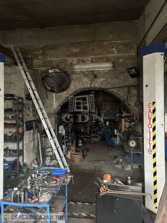 A főépület mellett nagy belmagasságú-szerelőaknákkal rendelkező, korábban autószerelő műhelyként használt garázsok kerültek kialakításra.
