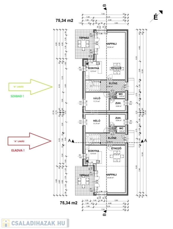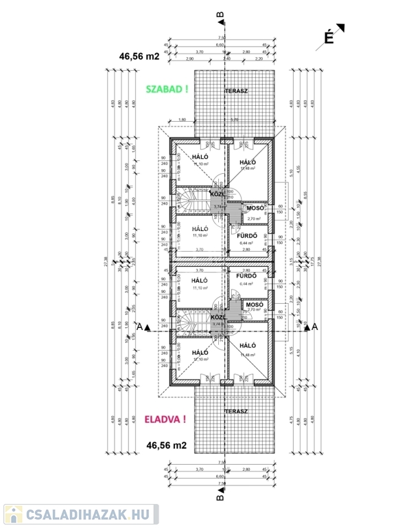 A ház felépítése: földszint + teljes értékű emelet, az eladásra kínált ingatlan a hátsó ikerházfél azaz a : " B LAKÁS" !