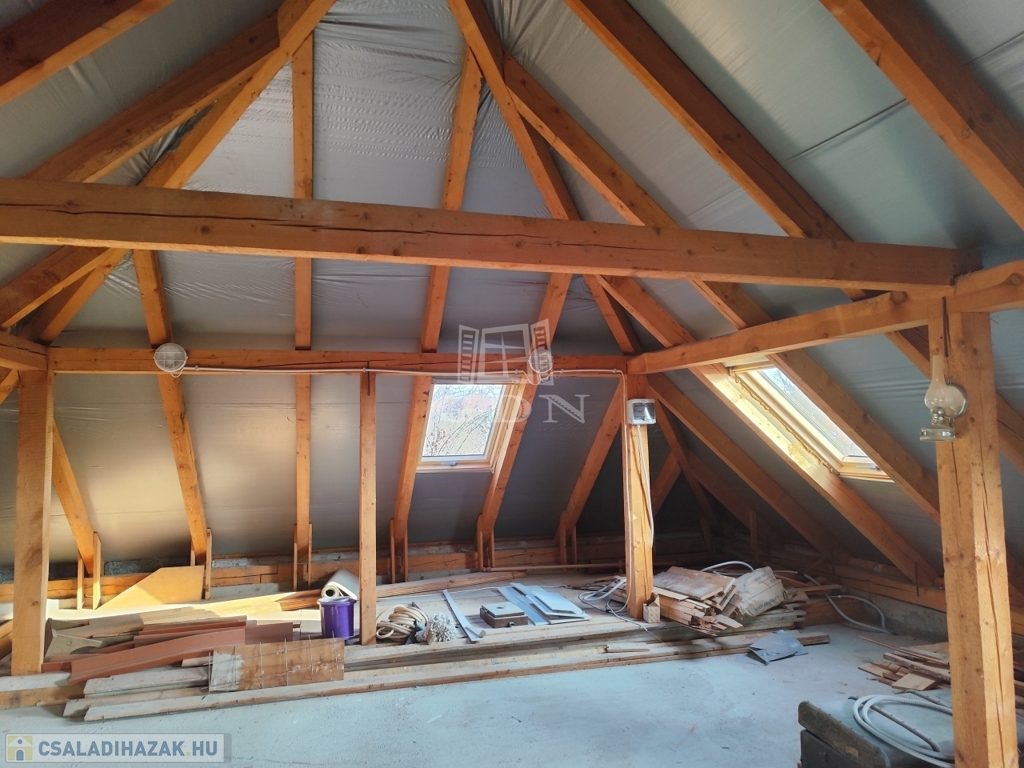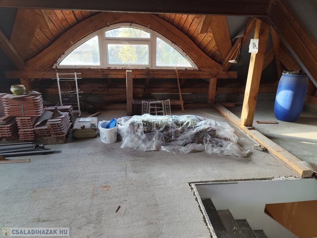 A tetőtér jelenleg beépítésre vár, de mérete és kialakíthatósága miatt hatalmas lehetőséget rejt magában, ideális alapot ad egy igazán kreatív, személyre szabott felső szint megvalósításához.