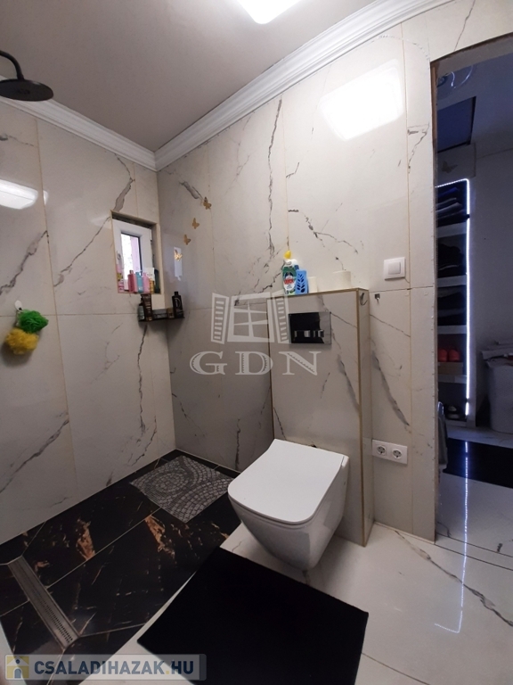 Az egyik hálószobához tartozik még egy zuhanyozós fürdőszoba WC-vel és egy gardrob szoba.