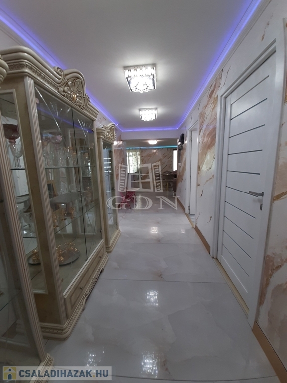 Széles folyosóról nyílnak a gyerek szobák, a nagy kádas fürdőszoba, és két nagy méretű hálószoba saját gardrób helyiségekkel.