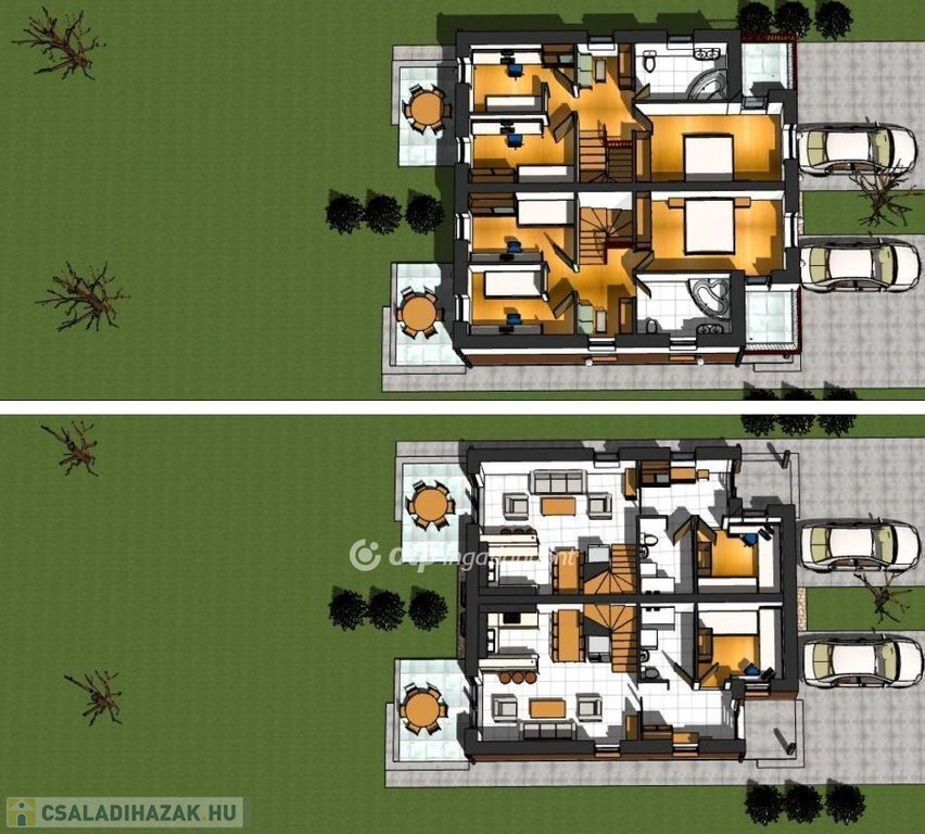 Telekterület: 294 m2-es saját, lekerített kert lakásonként