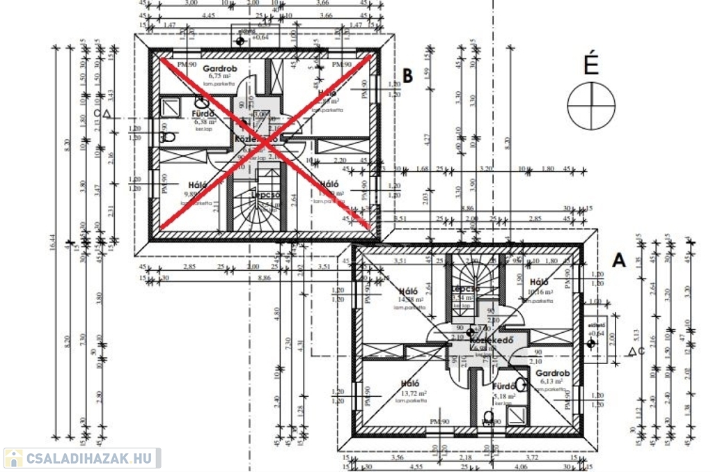 A két lakás CSAK A SARKÁNÁL KAPCSOLÓDIK, KÖZÖS FAL NÉLKÜL, így teljesen különálló otthonérzetet biztosítanak.
