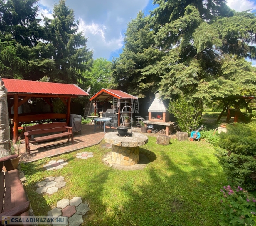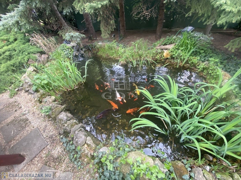 -kerti tárolókkal, sütőhellyel, kerti tóval, medencével rendelkezik