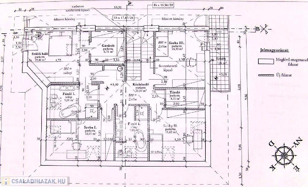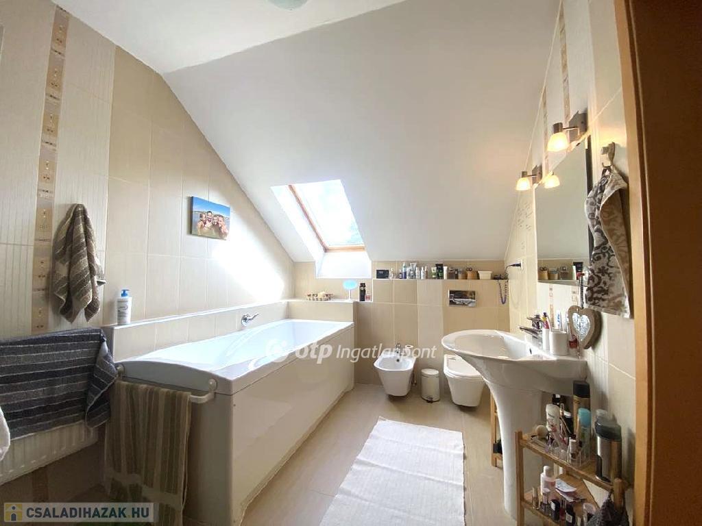 A 4 szint elosztása praktikus: az alagsorban 2 férőhelyes, 35 m2 garázs található, mosókonyha, kazánház, wellness helyiség, tárolók. A földszinten egy hatalmas konyha-étkező, tágas nappali, dolgozó/vendégszoba, az emeleten 4 háló, 2 fürdőszobával, 2 gardróbbal, valamint a tetőtérben egy szoba. Jelenleg a fűtést cirko kazán szolgáltatja radiátor és padlófűtés hőleadással, de rendelkezésre áll egy új vegyes tüzelésű kazán is, amely bármikor üzembe helyezhető. Minden emeleti szoba klímával felszerelt.
