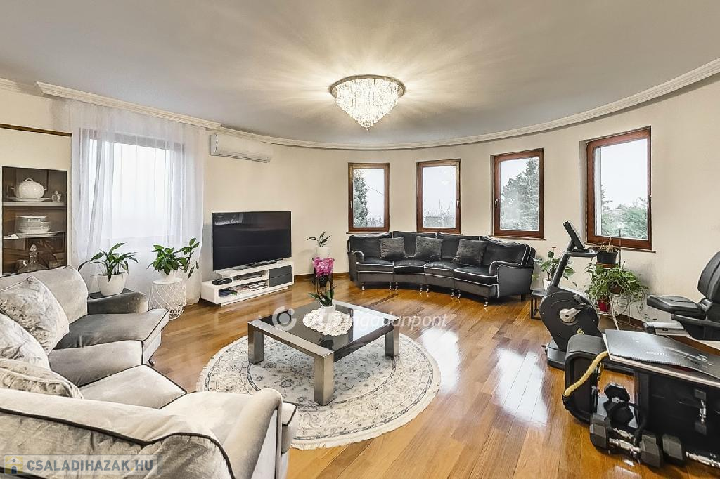 Csendes, zöldövezeti környezetben, mégis remek infrastruktúrával kínáljuk eladásra ezt a háromszintes, kétgenerációs családi házat Budafokon.