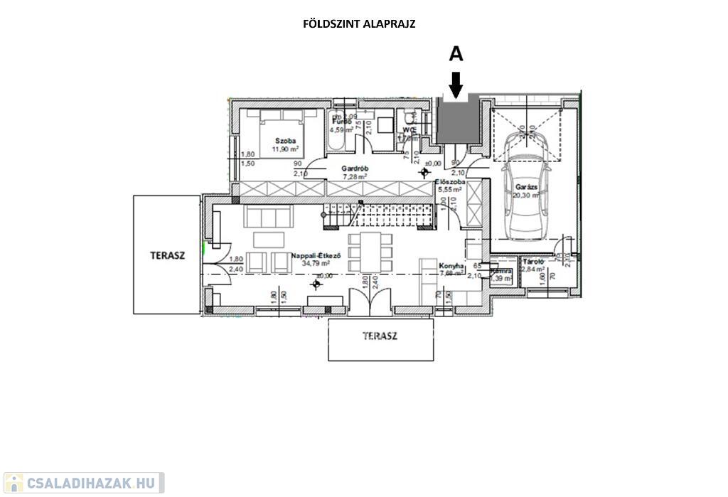 Amerikai konyhás nappali 42 m2, 17 m2 terasz kapcsolattal.
