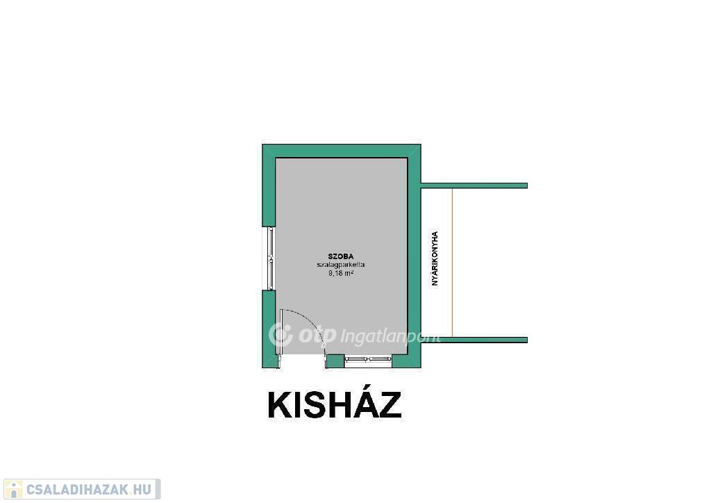 Fontos tudnivaló: a ház hétvégi háznak minősül, ezért kedvezményes hitelre nem vásárolható. A beépítési előírások szerint az építmény szintszáma bővíthető.