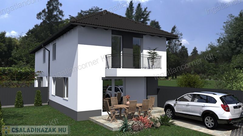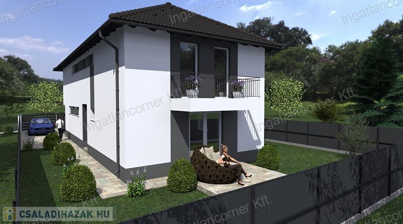 Az ingatlan első lakása alapterülete 86 m2 +5 m2 erkély telekméret 205 m2 104 M. Ft.