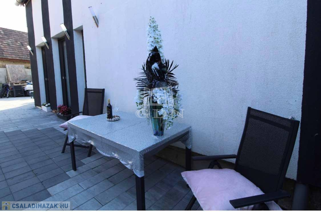 A hátsó épület még befejezésre vár, ami kétszintes, szintenként 56 m2. Az alsó szintet akár garázsnak vagy üzlethelyiségnek is ki lehet alakítani.