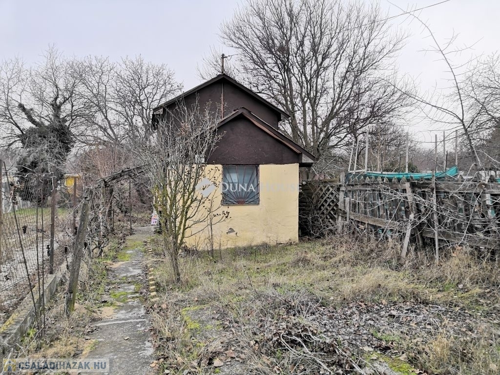 XXIII. kerület Soroksár Újtelep zártkerti részén, 961m2-es telken eladó egy 25m2 hasznos területtel rendelkező, nagyrészt tégla építésű, beton alapozású házikó, melléképületekkel.