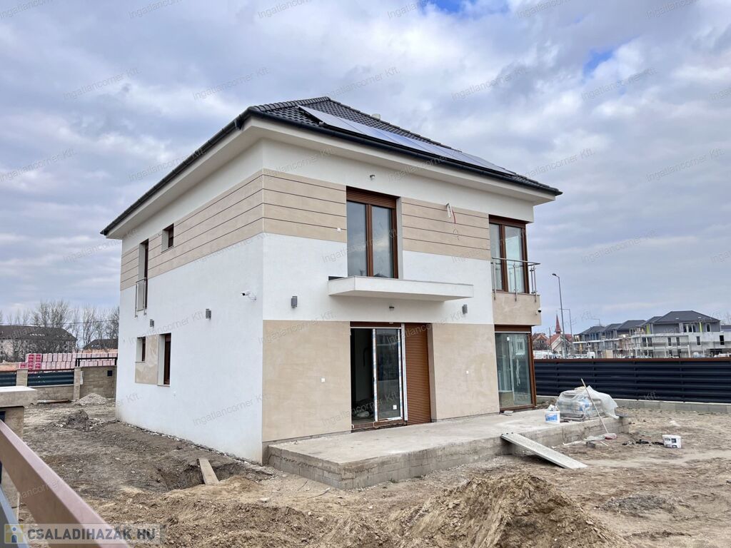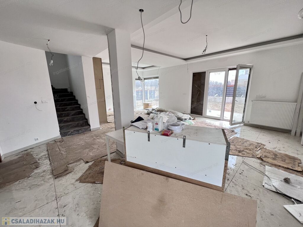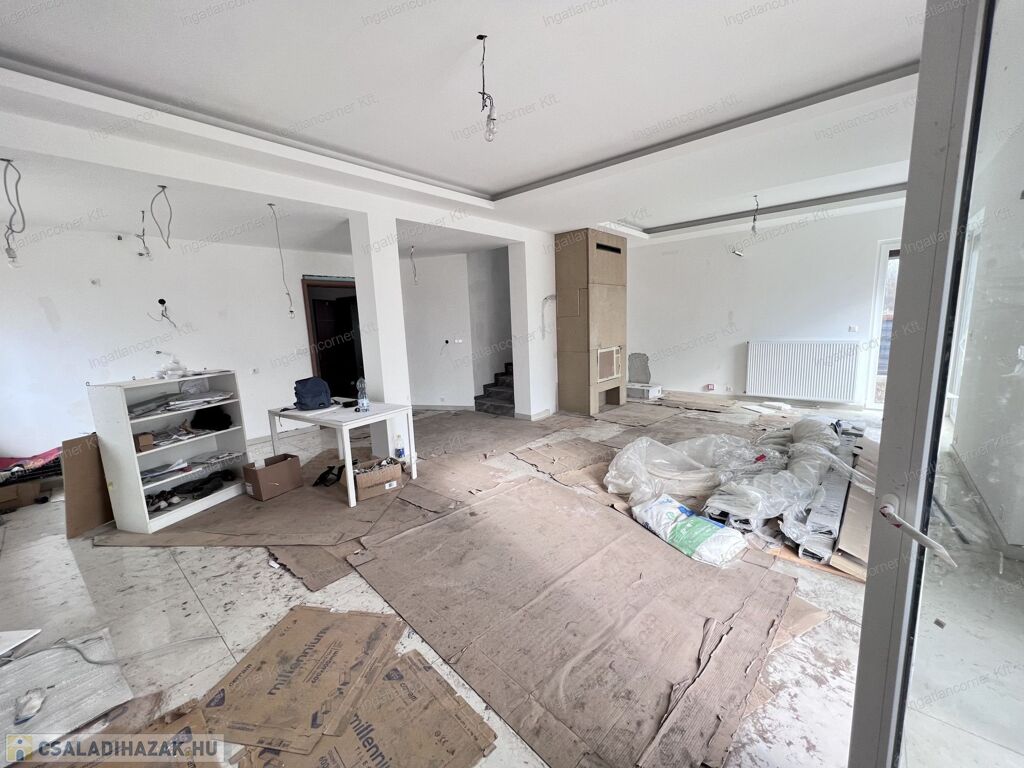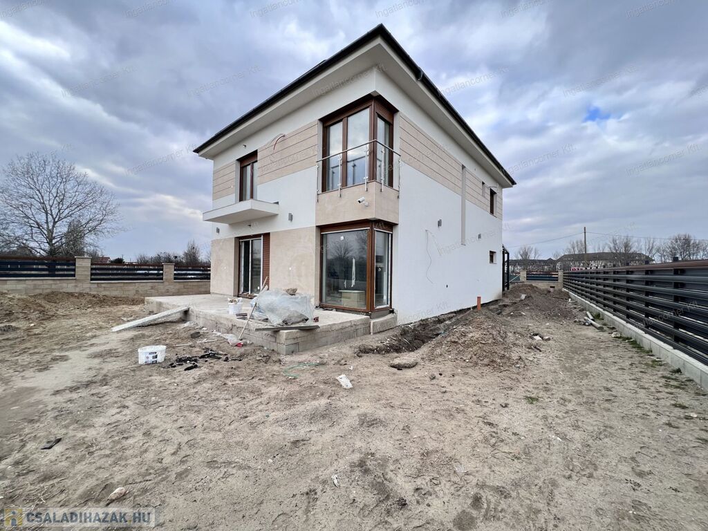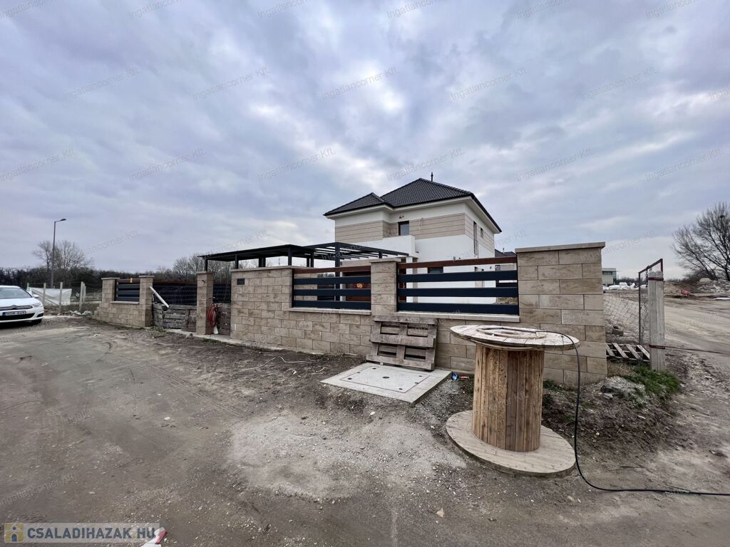 Soroksáron eladó újépítésű családiház! Az ingatlan magas műszaki tartalommal készül, igényes burkolatokkal és szaniterekkel. A belmagasság 3 méter. Kényelmes jól átgondolt alaprajz, élhető helyiségek. Újépítésű lakóparki környezet. Közelben boltok, bevásárló központok.