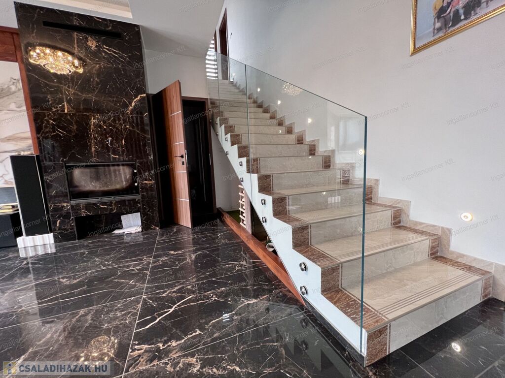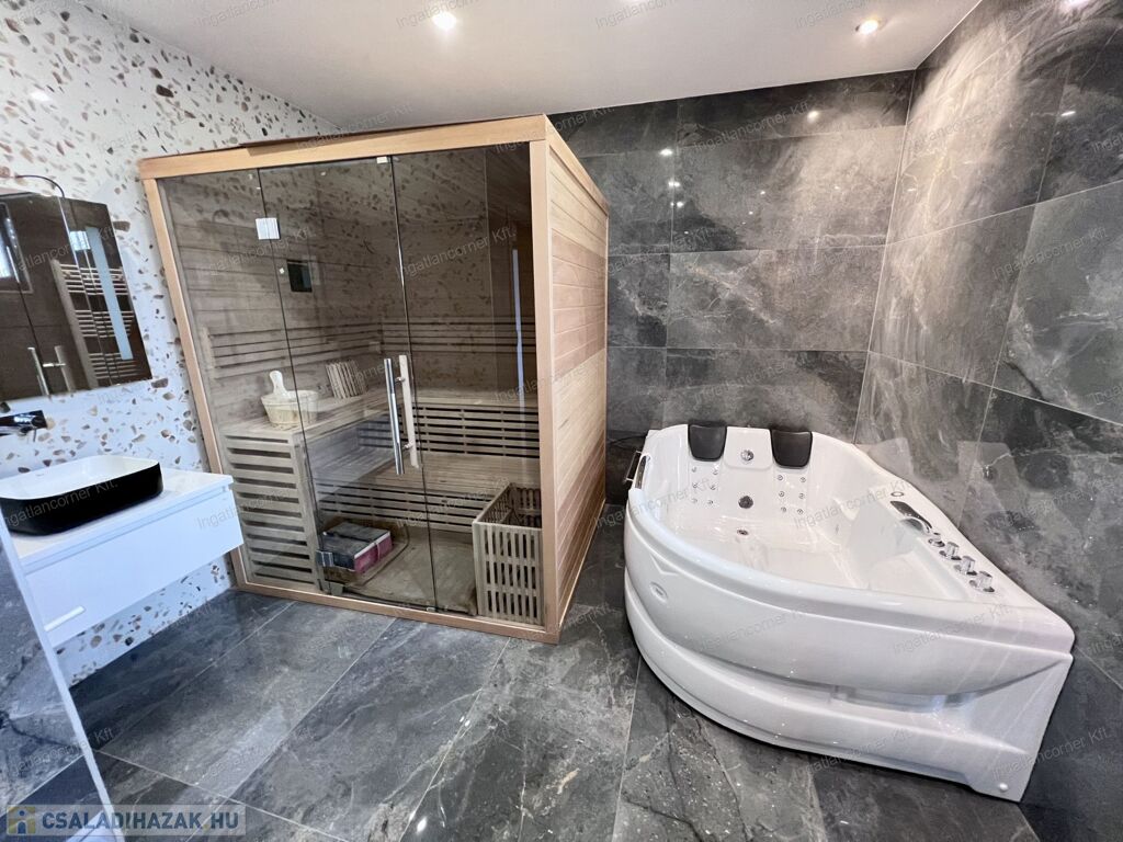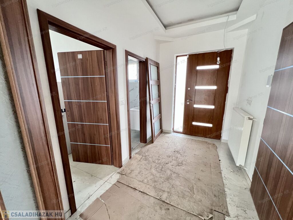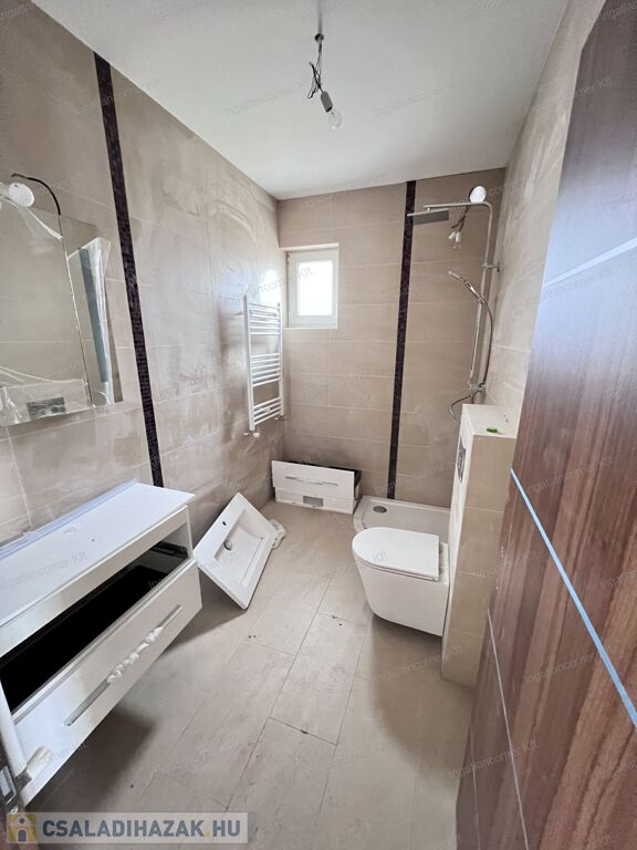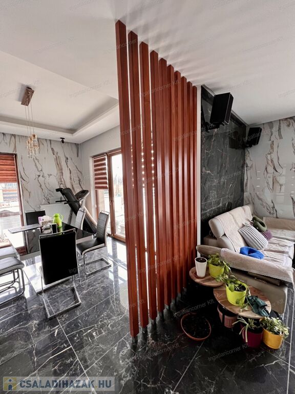 Soroksáron eladó újépítésű családiház! Az ingatlan magas műszaki tartalommal készül, igényes burkolatokkal és szaniterekkel. A belmagasság 3 méter. Kényelmes jól átgondolt alaprajz, élhető helyiségek. Újépítésű lakóparki környezet. Közelben boltok, bevásárló központok.