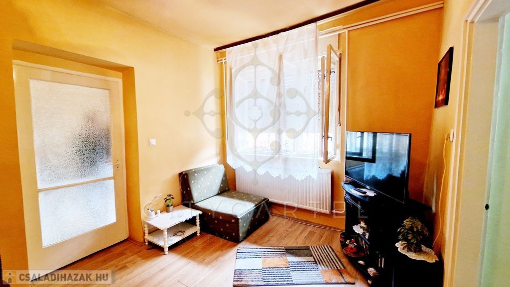 A hátsó lakrész kisebb, 16 nm-es, egy személy részére megfelelő. Előszoba, zuhanyzó és wc, és egy egyben található konyha és  háló rész. A  bejárati ajtók műanyagok, a ház többi részén még minden nyílászáró fa. A telekrész legvégében egy 10 nm-es tároló, ami jól kihasználható.