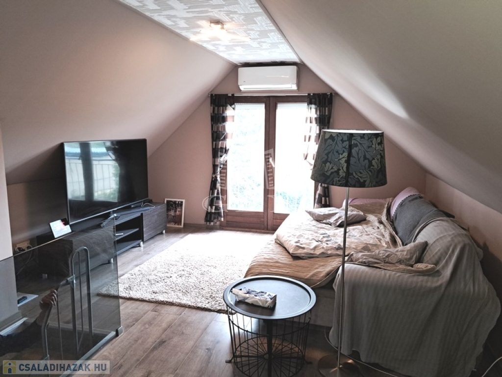 A ház hasznos alapterülete 75 m2 két szinten, alsó szint 36 m2, a tetőtér 39 m2.