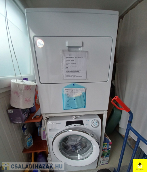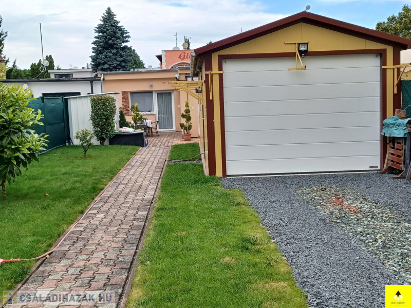 Műszaki adatok. Észak-déli fekvésű. Két utcára néző telek, még további beépítési lehetőséggel, ami jelentős értéknövelő tényező! Telekméret: 421 m2 – es. Beépített terület: 1x 85 m2 – es lakóépület, + 30 m2 – es garázs, ebben toalett, hideg- melegvíz, csatorna van, földgáz is bevezetve és mosoda van kialakítva új gépekkel. Az épület hőszigetelt panelből készült. Vízzáró szigetelt vasbeton alapszerkezetre. Ebben kapott helyet a mosóhelyiség, amiben 14 kg-os mosógép,15 kg-os szárítógép, 85 cm –es vasalógép található. Különálló épület van, ami a kerti szerszám és bicikli tároló