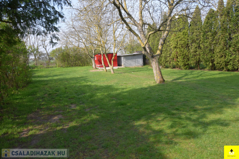 A telek 900 m2 nagyságú. Itt található 2 db garázs, melyből az egyik aknás. A kert gondozott és gyümölcsfákkal (diófa, almafák, szilvafák) beültetett.