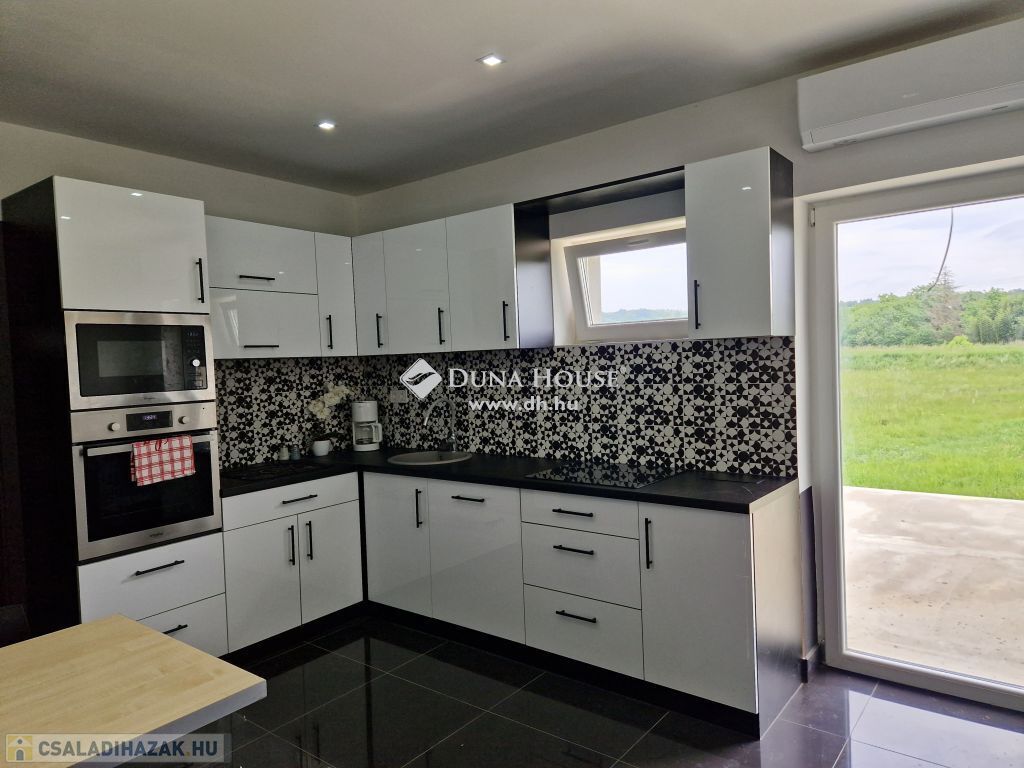 A ház fűtése elektromos kazánnal és padlófűtéssel van megoldva, emellett három darab klíma is biztosítja a megfelelő hőmérsékletet az ingatlanban. A vételár része egy modern, magasfényű fehér-fekete konyhabútor beépített gépekkel, amely tökéletesen illeszkedik a ház elegáns stílusához.