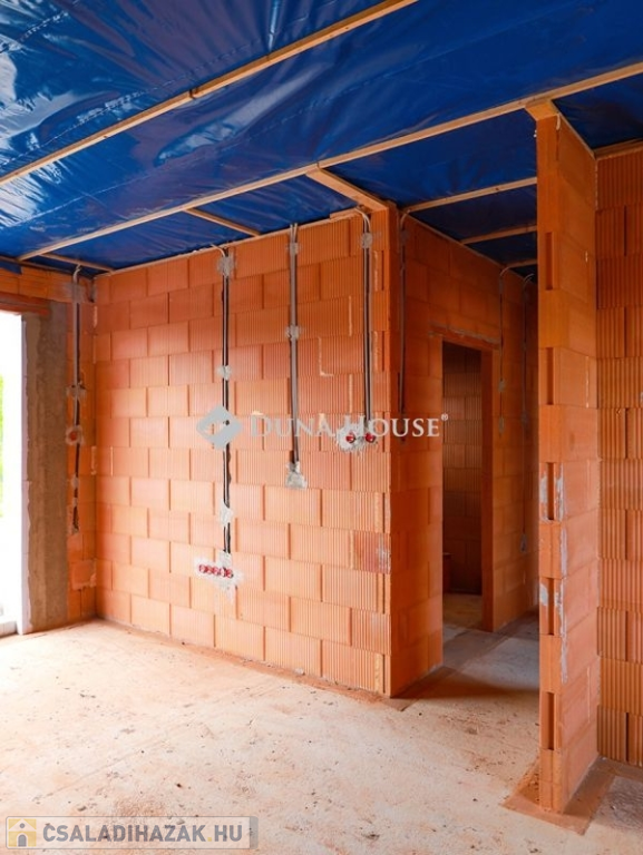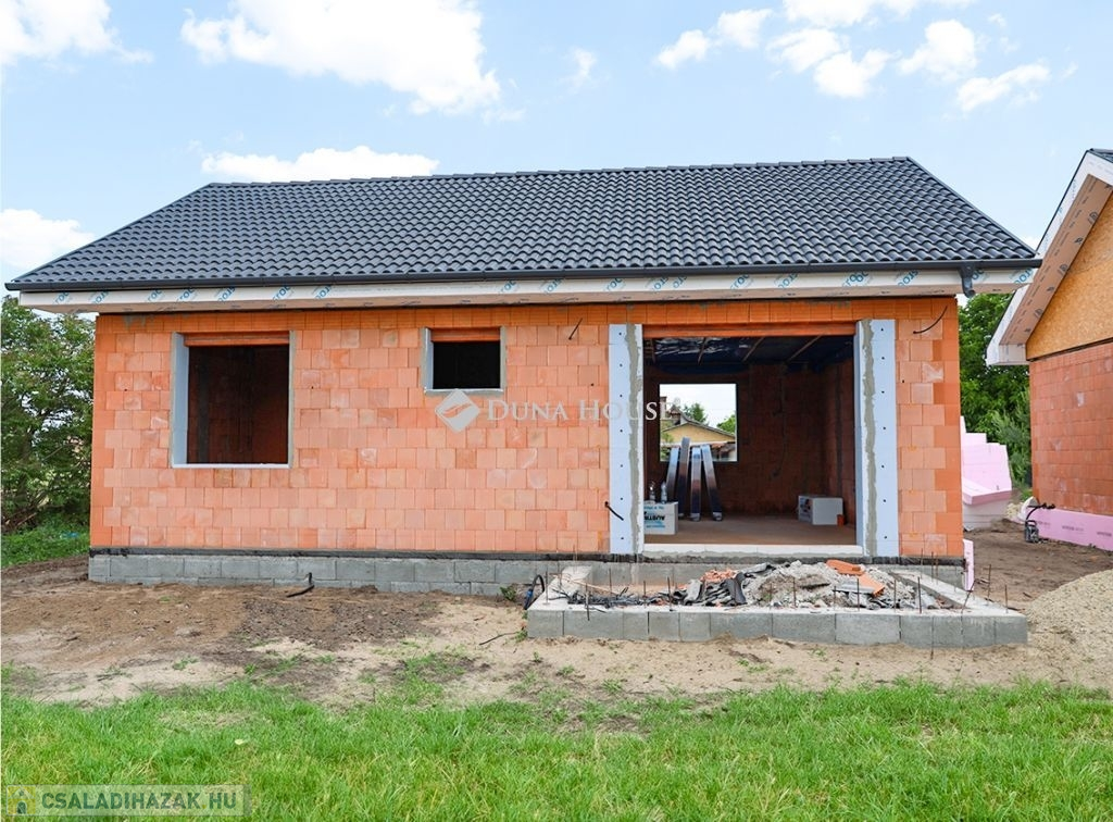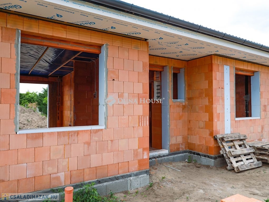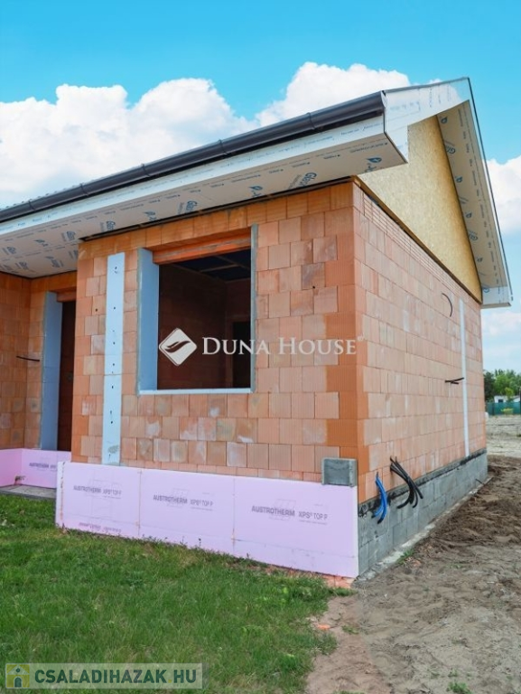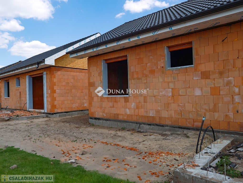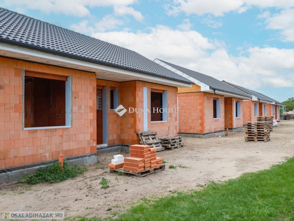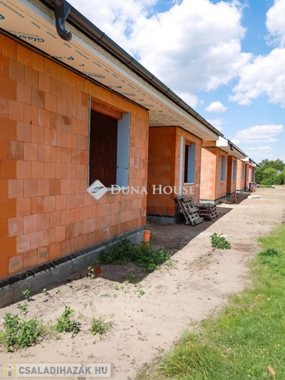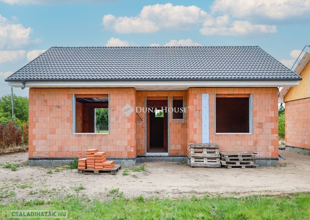 Eladásra kínálunk Cegléd, Nyíl közben egy 65 m²-es, új építésű családi házat, amely hőszivattyúval, fedett gépkocsibeállóval és prémium műszaki tartalommal rendelkezik.A 735 m²-es telek a vételár részét képezi, és az osztatlan közös tulajdonhoz ügyvédi használati megosztás is tartozik. A teljes, 2940 m²-es területen 4db sorházi jellegű családi ház épül. Minden ingatlanhoz saját 400 m²-es telekrész, közös elektromos kapu, fedett beálló, valamint egy térkövezett parkolóhely is tartozik.A kivitelezés már megkezdődött, a várható átadás pedig 2025. november. A kivitelező KÖTBÉR-GARANCIÁT IS VÁLLAL!A projekt kivitelezői ELŐFINANSZÍROZÁSSAL is megvásárolható (nem kell előre fizetni), tehát mindig az elkészült, átadott ütem után kell fizetni, illetve a kivitelező szerződésben vállalja, hogy ÁR GARANCIÁT vállal az építményre.A családi ház nettó alapterülete 65 m2, amely tartalmaz: 3 szobát (amerikai konyha-nappali-étkező + 2 hálószoba); 1 fürdőszobát Fedett gépkocsi beállót és egy előszobát.Műszaki tartalom: Teherhordó falazat: Wienerberger Porotherm Profi 30 X-Therm tégla Homlokzati hőszigetelés: 15 cm Tetőhéjazat választható: Leier Toscana tetőcserép választható színben Külső nyílászárók: 3 réteg üvegezésű, kívül antracit, belül fehér prémium Gealan S8000 külső nyílászárók, 36 mm-es üvegezéssel + antracit, alumínium redőnyök + antracit műkő párkány Válaszfal: Wienerberger Porotherm 10 tégla válaszfal Hidegburkolat választható: 6500 Ft / m2 Melegburkolat választható: 6000 Ft / m2 Szaniterek választható: (kád, zuhanykabin, csaptelep stb.) 460000Ft-ig Bejárati ajtó választható: Colorplast standard betéttel Teraszajtó: Dupla szárnyas Beltéri ajtó: Borovi Szicília (dekorfóliás) választható színben Gépészet: Bosch 3400 levegő-víz hőszivattyú vizes padlófűtésselAz ár kulcsrakész állapotban történő átadással értendő, konyhabútor és lámpatestek nélkül!Közművek: Gáz: nincs Villany: ingatlanban Csatorna: derítő kerül kiépítésre Víz: ingatlanbanAjánlom mindazoknak, akik Cegléd csendes, új-építésű környezetben szeretnének élni.