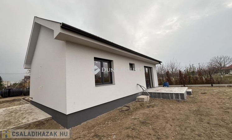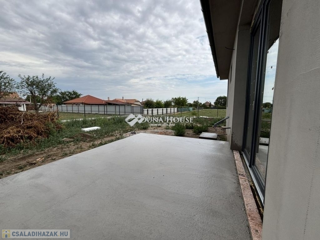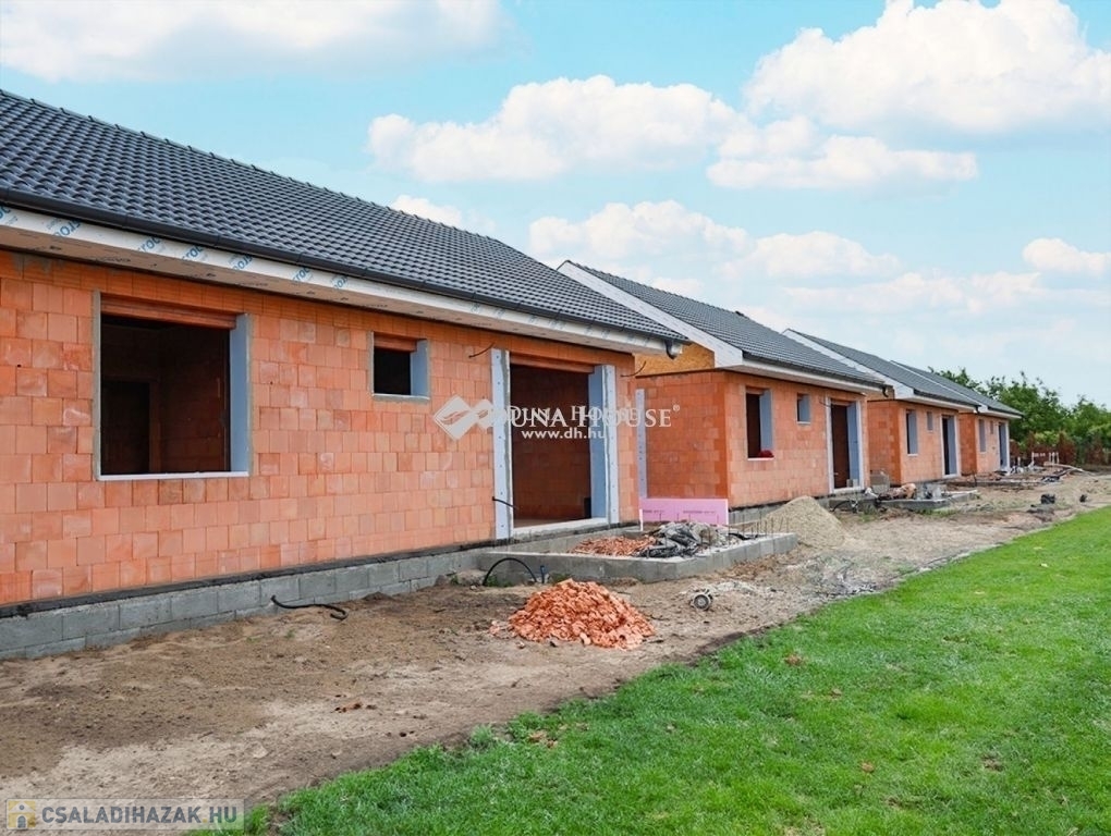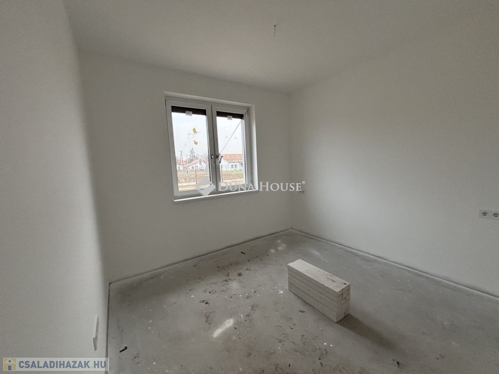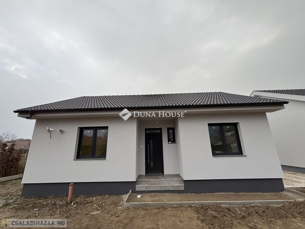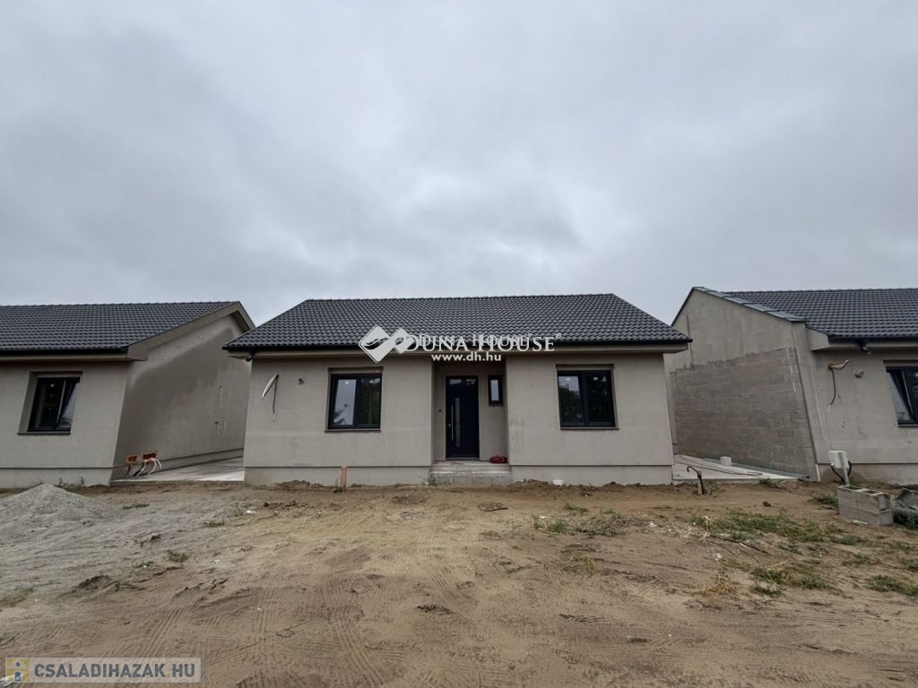 Eladásra kínálunk Cegléd, Nyíl közben egy 65 m²-es, új építésű családi házat, amely hőszivattyúval, fedett gépkocsibeállóval és prémium műszaki tartalommal rendelkezik.A 400 m²-es telek a vételár részét képezi, és az osztatlan közös tulajdonhoz, ügyvédi használati megosztás is tartozik.A teljes, 2940 m²-es területen 4db sorházi jellegű családi ház épül. Minden ingatlanhoz saját telekrész tartozik. (400 m²)Továbbá közös elektromos kapu, fedett beálló, valamint egy parkolóhely is.A kivitelezés már megkezdődött, a várható átadás pedig 2026. február.A kivitelező KÖTBÉR-GARANCIÁT IS VÁLLAL!A projekt kivitelezői ELŐFINANSZÍROZÁSSAL is megvásárolható (nem kell előre fizetni), tehát mindig az elkészült, átadott ütem után kell fizetni, illetve a kivitelező szerződésben vállalja, hogy ÁR GARANCIÁT vállal az építményre.A családi ház nettó alapterülete 65 m2, amely tartalmaz:3 szobát (amerikai konyha-nappali-étkező + 2 hálószoba);1 fürdőszobátFedett gépkocsi beállótés egy előszobát.Műszaki tartalom:Teherhordó falazat: Wienerberger Porotherm Profi 30 X-Therm téglaHomlokzati hőszigetelés: 15 cmTetőhéjazat választható: Leier Toscana tetőcserép választható színbenKülső nyílászárók: 3 réteg üvegezésű, kívül antracit, belül fehér prémium Gealan S8000 külső nyílászárók, 36 mm-es üvegezéssel + antracit, alumínium redőnyök + antracit műkő párkányVálaszfal: Wienerberger Porotherm 10 tégla válaszfalBejárati ajtó választható: Colorplast standard betéttelTeraszajtó: Dupla szárnyasBeltéri ajtó: Borovi Szicília (dekorfóliás) választható színbenGépészet: Bosch 3400 levegő-víz hőszivattyú vizes padlófűtésselAz ár kulcsrakész állapotban történő átadással értendő, konyhabútor és lámpatestek nélkül!Közművek:Gáz: nincsVillany: ingatlanbanCsatorna: derítő kerül kiépítésreVíz: ingatlanbanAjánlom mindazoknak, akik Cegléd csendes, új-építésű környezetben szeretnének élni.