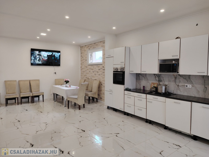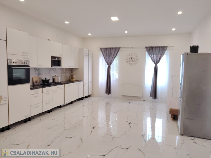 Cegléden, aszfaltozott utcában, sarok teleken álló, 104 m2-es felújított családi házat kínálok értékesítésre. Az épület a 70'-es években épület beton alapra vegyes falazattal. Jelenleg 1 amerikai konyhás nappali, egy szoba, 2 félszoba és 2 fürdőszoba található benne. Az egyik választott fürdőszoba teljesen megújulhat a leendő vevő ízlése szerint ajándékba. 2022-2024 között megújult: víz- és villany vezetékek, H tarifás villanyóra, teljes tető szerkezet Lindab héjazattal, új bukó-nyíló műanyag nyílászárók, vegyes kazán vízteres radiátorokkal, 2 db Gree klíma beüzemelése, új nappali és új kerítés. A közművek közül villany, víz, csatorna rákötés van, gázcsonk a telken belül. Az udvaron áll egy kis kb. 40 m2-es különálló kisház, melyben nappali, szoba, konyha, fürdőszoba található. Ideális lehet albérletbe kiadni vagy esetleg üzlethelyiségnek is lehet hasznosítani.