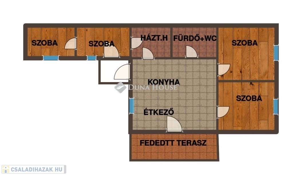 Kialakítása: nappal+ konyha étkező, 2 tágas utcafronti szoba, 2 egybenyíló szoba, fürdő+wc, háztartási helyiség. Lehetősége van az ingatlan külön bejáratú használatra is, akár üzleti célra is megfelel. Beton alapon épült, vegyes falazatú cserép tető borítású.