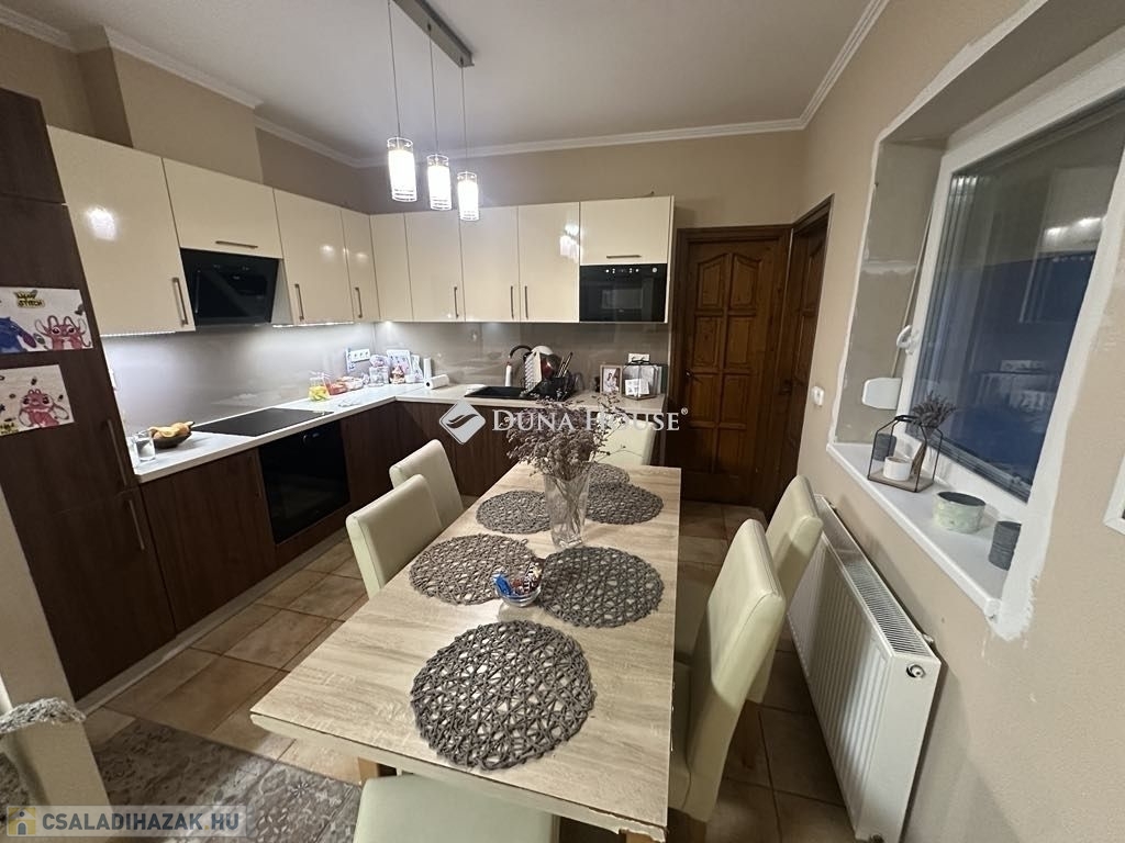 Cegléden eladó egy 103,74 nm-es négy szobás amerikaikonyhás nappalival rendelkező tégla építésű családi ház. Az épület egy 550 nm-es körbekerített telere épült 2005-ben. Az épületet 2018- 2023-között folyamatosan korszerűsítették. A felújítás soron kicserélték az összes külső nyílászárót melyek 3 rétegű üvegezést és redőnyt kaptak. A fűtésrendszert modernizálták új kondenzációs gázkazán került beépítésre és egy vegyestüzelésű kazán. Az elektromos hálózatot is újra húzták, 3 fázis ipari áramtalálható az otthonban. A fűtés gázcirkón és radiátorokon keresztül történik. A belső elosztása a családi háznak négy szoba, konyha-étkező-nappali, kamra, közlekedő, fürdő, wc, kazánház, terasz. A kert parkosított öntözéséről fúrt kút gondoskodik. Az otthon tehermentes rövid határidővel költözhető! Ha megtetszett Önnek az ingatlan kérem hívjon bizalommal a hét bármely napján akár hétvégén is.