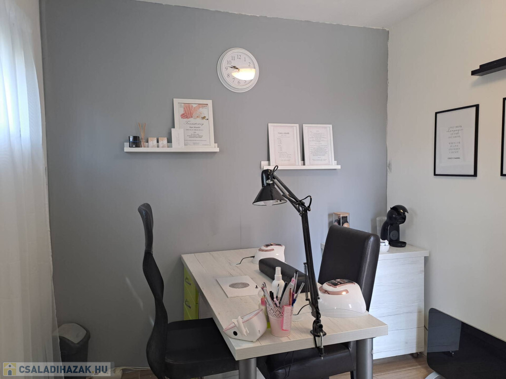 A téglaépítésű családi ház 2019-ben került a jelenlegi tulajdonos birtokába. Teljes felújítás, átalakítás alatt esett át. Gyakorlatilag a falakat kivéve minden új lett beépítve. Víz, villany, nyílászárók, burkolatok. Szigetelések, központi fűtéstrendszer, szellőzőrendszer, klímák. Biztonsági berendezés videó kamerarendszerrel. Okos telefonnal működtethető a fűtés-hűtés. Bejáratott műkörmös szalon.
