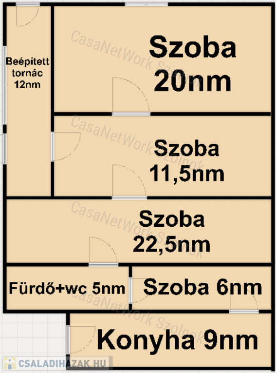 - rendelkezése álló helyiségek: 3 szoba, 1 fél szoba, fürdőszoba+wc, kamra, konyha, beépített tornác