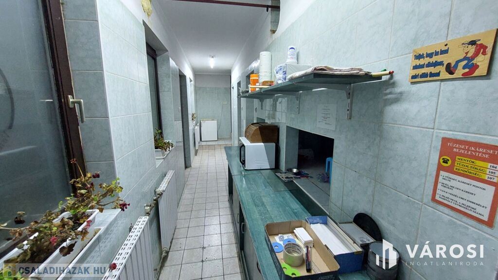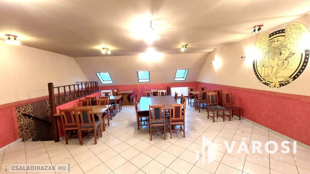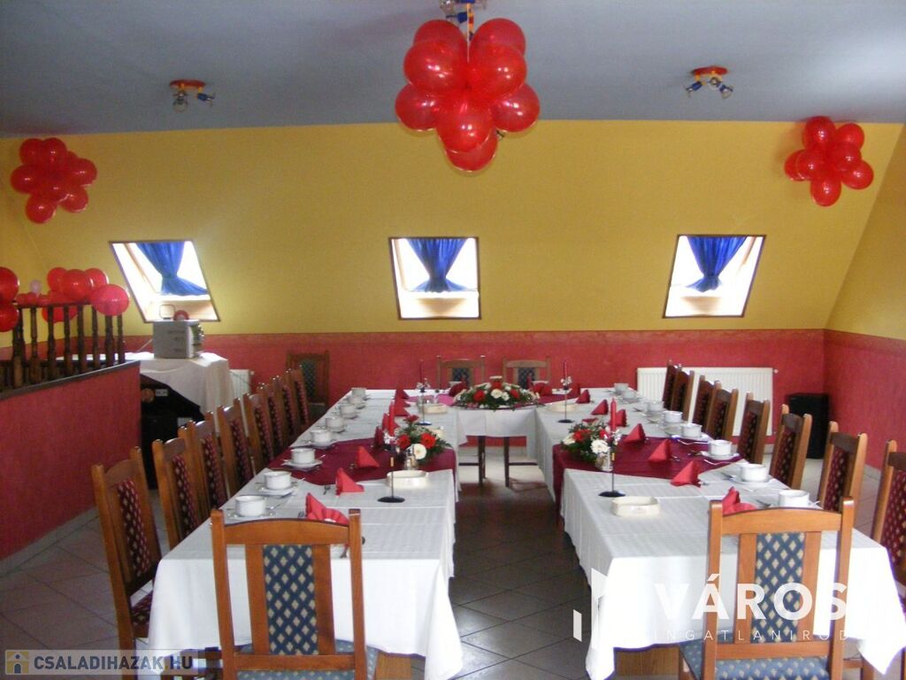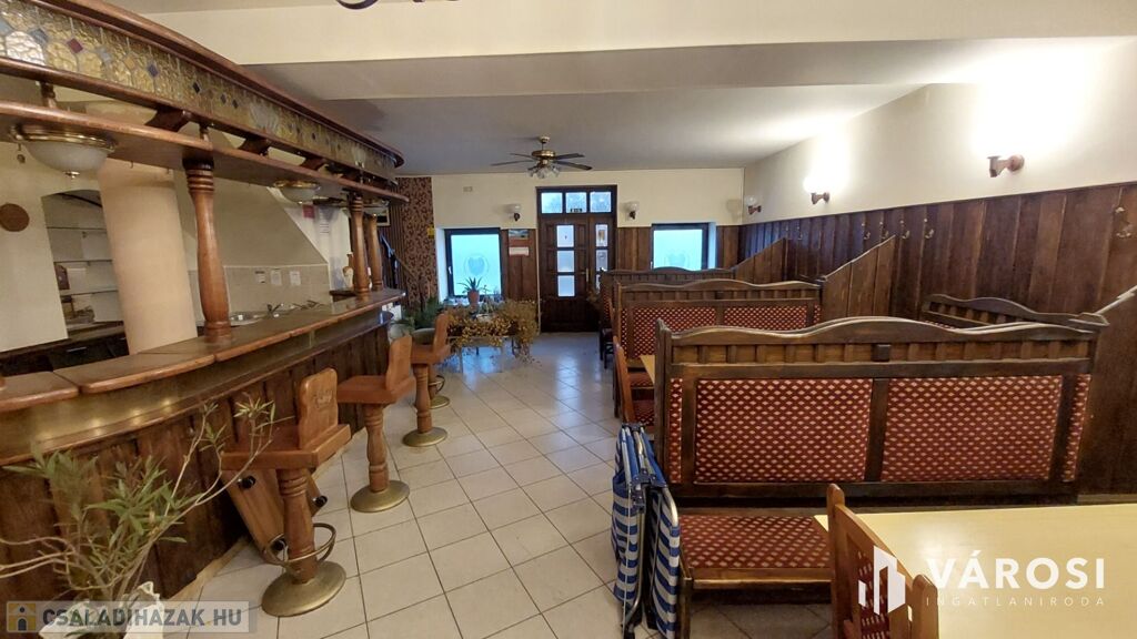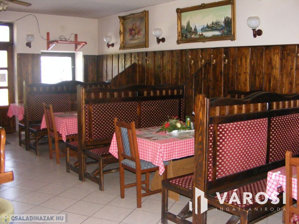 A 200 m2-es pizzéria-vendéglő önálló bejárattal és kerthelyiséggel rendelkezik. Azonnal bérbeadható. Az épületben vendégtér, mosdók és egy nagy méretű pizzakemence található. A vendéglő működtetéséhez szükséges helyiségek jó minőségűek, a hatósági előírásoknak megfelelnek. Az épület akár más jellegű üzleti vállalkozás számára is sokoldalúan hasznosítható.