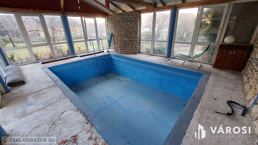 A 1705 m2-es telken fürdőház medencével és melléképületek is vannak.