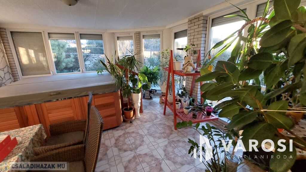 A két szintes, 200 m2-es családi házban földszinten és emeleten egy-egy nappali, fürdőszoba és hálószobák találhatók. A földszinti nappalihoz téli kert csatlakozik 8 személyes jakuzzival. Innen közvetlen kijárat nyílik a gondozott kertbe és az egyik teraszra. Az alsó lakótérhez kazánház és két garázs tartozik. Az emelet külön bejáraton keresztül is megközelíthető, így akár külön lakrész is lehet.