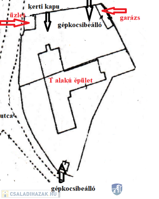Az ingatlan két helyrajzi számon helyezkedik el, T alakú épület, összesen 3320 nm alapterületű telken.