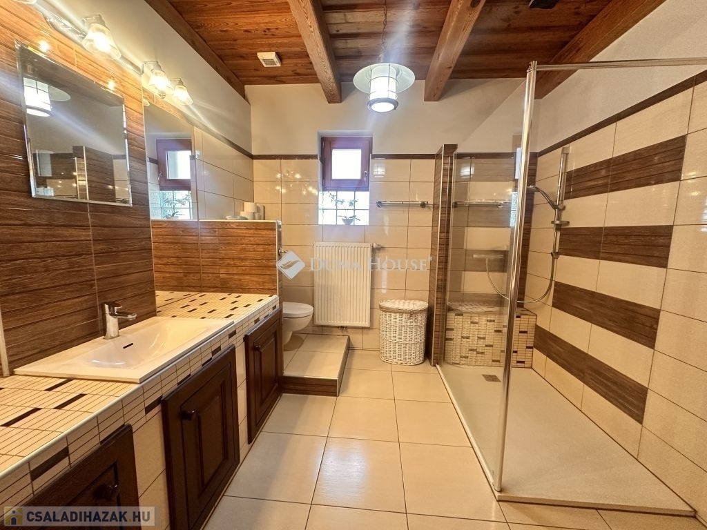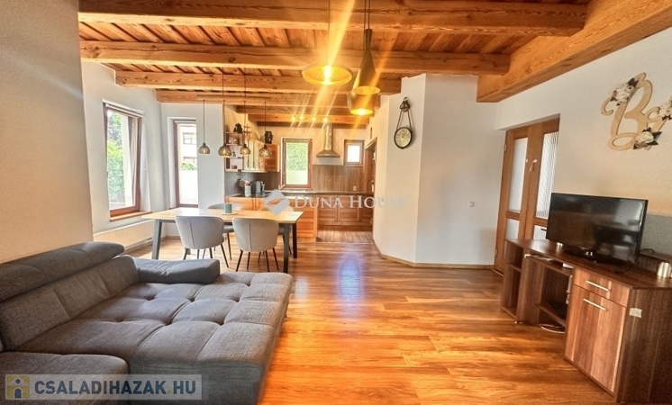 Jó szívvel ajánlom megvételre Vas megyében az Őrség Kapujában ezt a 2009-ben épült, 160 m2-es családi házat és meghitt otthont, ahová a családtagok szívesen térnek haza.Csákánydoroszló az osztrák határ közelében található ahol az Őrség semmihez sem fogható tája és bája számos szabadidős kikapcsolódást és tevékenységnek kínál minden korosztály számára. A romantikus ingatlan tökéletes választás azok számára, akik a vidéki nyugalomat és a természet közelségét szeretnék élvezni anélkül, hogy lemondanának a modern otthon kényelméről / fenntarthatóságáról illetve az energiatakarákosságot is fontosnak tartják.Az autentikus hangulatú családi háznak tégla falazata van melyen 10 cm-es hőszigetelés található. A nyílászárók fából készültek, az egész ház szigetelt fafödémes. A tető terrán cseréppel fedett. A házban 3 hálószoba, nappali, étkező, konyha, nagy fürdő WC-vel, előtér, közlekedő, ruhás és cipős gardrób, kazánház, lakásból nyíló fűtött garázs benne elkülönített mosó helyiség WC-vel, valamint egy nappalivá beépített korábbi terasz található. A konyha és a fürdőszoba 4 éve teljeskörűen átépítésre került. A melegvíz ellátását napkollektor+gázkazán biztosítja. A házat fűteni a nappaliban található vízteres kandallóval vagy gázkazánnal radiátoron és padlófűtésen keresztül lehet, illetve a ház hűtése-fűtése beépített klímával is megoldható. 4,6 kW-os napelem rendszer 2021-ben került telepítésre, amely bőségesen kielégíti a ház szükségleteit, ennek köszönhetően nincs áramszámla. A ház biztonságáról riasztó és 4 kamerás megfigyelő rendszer gondoskodik. Az ablakokon szúnyoghálók találhatók. Az udvar területén 36 m2-es garázs található, melyben 12 m2-es nyári konyha került kialakításra. A kényelmet fokozza az elektromos bejárati és garázskapuk. Az udvar első része parkosított melyen nyári kiülő is helyet kapott. A udvar hátulsó kb. 800 m2-es részén 3db autóbeálló/tároló, valamint gazdasági épületek (3 db angol box, tároló, szénatároló és fatároló) található.A sík és ideális terepviszonyokkal rendelkező telek teljes tererülete be van kerítve.A településen van iskola, óvoda, bölcsőde, boltok, házi és fogorvosi rendelők, védőnői szolgálat, gyógyszertár, benzinkút, vasútállomás, étterem...Ha a hirdetésem felkeltette az érdeklődését akkor kérem hívjon bizalommal és tudjon meg többet erről a csodálatos ingatlanról.Irodánkban pénzügyi szakértő kollégánk segíti ügyfeleink Hitel és CSOK ügyintézését ezzel együtt támogatja vásárlási szándékukat. Ne feledje vevőinknek minden szolgáltatásunk INGYENES!