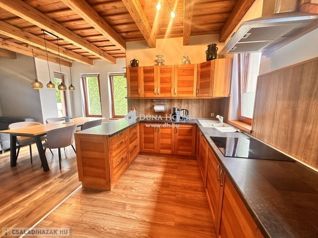 Az autentikus hangulatú családi háznak tégla falazata van melyen 10 cm-es hőszigetelés található. A nyílászárók fából készültek, az egész ház szigetelt fafödémes. A tető terrán cseréppel fedett. A házban 3 hálószoba, nappali, étkező, konyha, nagy fürdő WC-vel, előtér, közlekedő, ruhás és cipős gardrób, kazánház, lakásból nyíló fűtött garázs benne elkülönített mosó helyiség WC-vel, valamint egy nappalivá beépített korábbi terasz található. A konyha és a fürdőszoba 4 éve teljeskörűen átépítésre került. A melegvíz ellátását napkollektor+gázkazán biztosítja. A házat fűteni a nappaliban található vízteres kandallóval vagy gázkazánnal radiátoron és padlófűtésen keresztül lehet, illetve a ház hűtése-fűtése beépített klímával is megoldható. 4,6 kW-os napelem rendszer 2021-ben került telepítésre, amely bőségesen kielégíti a ház szükségleteit, ennek köszönhetően nincs áramszámla. A ház biztonságáról riasztó és 4 kamerás megfigyelő rendszer gondoskodik. Az ablakokon szúnyoghálók találhatók. Az udvar területén 36 m2-es garázs található, melyben 12 m2-es nyári konyha került kialakításra. A kényelmet fokozza az elektromos bejárati és garázskapuk. Az udvar első része parkosított melyen nyári kiülő is helyet kapott. A udvar hátulsó kb. 800 m2-es részén 3db autóbeálló/tároló, valamint gazdasági épületek (3 db angol box, tároló, szénatároló és fatároló) található.
