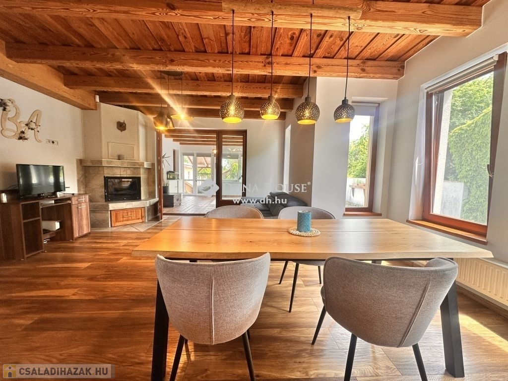 Jó szívvel ajánlom megvételre Vas megyében az Őrség Kapujában ezt a 2009-ben épült, 160 m2-es családi házat és meghitt otthont, ahová a családtagok szívesen térnek haza. Csákánydoroszló az osztrák határ közelében található ahol az Őrség semmihez sem fogható tája és bája számos szabadidős kikapcsolódást és tevékenységnek kínál minden korosztály számára. A romantikus ingatlan tökéletes választás azok számára, akik a vidéki nyugalmat és a természet közelségét szeretnék élvezni anélkül, hogy lemondanának a modern otthon kényelméről / fenntarthatóságáról illetve az energiatakarékosságot is fontosnak tartják. Az autentikus hangulatú családi háznak tégla falazata van melyen 10 cm-es hőszigetelés található. A nyílászárók fából készültek, az egész ház szigetelt fafödémes. A tető terrán cseréppel fedett. A házban 3 hálószoba, nappali, étkező, konyha, nagy fürdő WC-vel, előtér, közlekedő, ruhás és cipős gardrób, kazánház, lakásból nyíló fűtött garázs benne elkülönített mosó helyiség WC-vel, valamint egy nappalivá beépített korábbi terasz található. A konyha és a fürdőszoba 4 éve teljeskörűen átépítésre került. A melegvíz ellátását napkollektor+gázkazán biztosítja. A házat fűteni a nappaliban található vízteres kandallóval vagy gázkazánnal radiátoron és padlófűtésen keresztül lehet, illetve a ház hűtése-fűtése beépített klímával is megoldható. 4,6 kW-os napelem rendszer 2021-ben került telepítésre, amely bőségesen kielégíti a ház szükségleteit, ennek köszönhetően nincs áramszámla. A ház biztonságáról riasztó és 4 kamerás megfigyelő rendszer gondoskodik. Az ablakokon szúnyoghálók találhatók. Az udvar területén 36 m2-es garázs található, melyben 12 m2-es nyári konyha került kialakításra. A kényelmet fokozza az elektromos bejárati és garázskapuk. Az udvar első része parkosított melyen nyári kiülő is helyet kapott. A udvar hátulsó kb. 800 m2-es részén 3db autóbeálló/tároló, valamint gazdasági épületek (3 db angol box, tároló, szénatároló és fatároló) található. A sík és ideális terepviszonyokkal rendelkező telek teljes területe be van kerítve. A településen van iskola, óvoda, bölcsőde, boltok, házi és fogorvosi rendelők, védőnői szolgálat, gyógyszertár, benzinkút, vasútállomás, étterem...Ha a hirdetésem felkeltette az érdeklődését akkor kérem hívjon bizalommal és tudjon meg többet erről a csodálatos ingatlanról. Irodánkban pénzügyi szakértő kollégánk segíti ügyfeleink Hitel és CSOK ügyintézését ezzel együtt támogatja vásárlási szándékukat. Ne feledje vevőinknek minden szolgáltatásunk INGYENES!